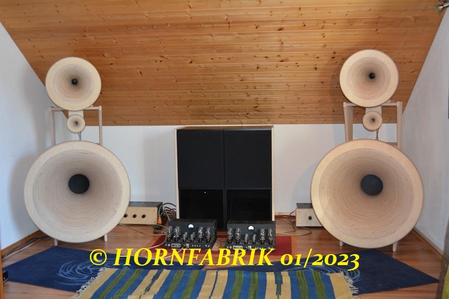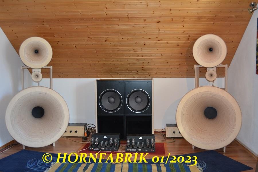 Zudem können sich Besitzer eines Dreiwege-Hornsystems den sensationellen Klanggewinn eines Vollhornsystems anhören und mit uns die Erweiterungsmöglichkeiten ihres Dreiwegehornsystems zum Vollhornsystem abstimmen. Das schließt auch den Selbstbau der Gehäuse ein, weil wir auch die Einzelteile dieses Systems zum Verkauf anbieten.