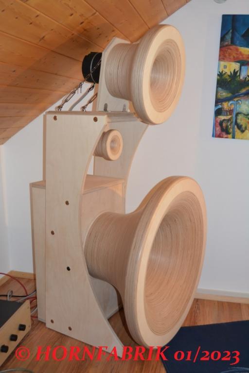 Das eröffnet die Möglichkeit, sich solch ein Hornsystem ausgiebig anhören zu können und mit uns das Design und die Größe abzustimmen, um es in nahezu jeden Wohnraum integrieren und betreiben zu können. Für uns entsteht der Vorteil, dass wir fertiggestellte Hornsysteme nicht aufwendig umgestalten müssen, weil irgendwo einige cm fehlen oder eine besondere farbliche Gestaltung erforderlich ist.