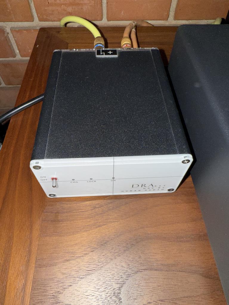 Human Audio DRA Kit Plus D/A converter in flawless condition. 2 RCA S/PDIF input, RCA output. It is one year old and still has one year manufacturer's warranty. Battery is in good condition. First owner. Charger included.