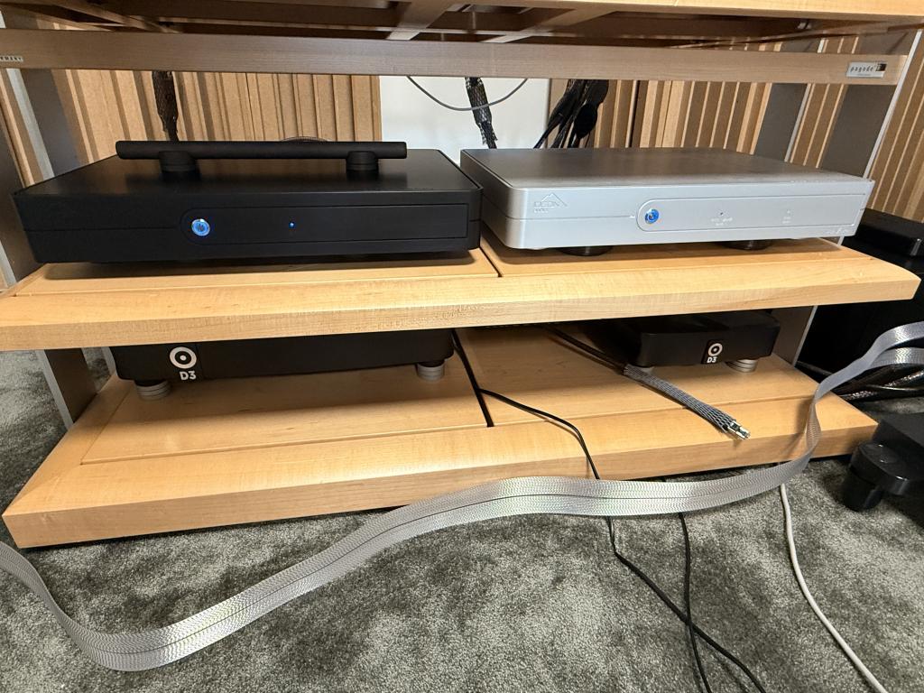 **DIGITALE AUDIO-AUSGANG:** 2 X USB mit eigenem Re-Clocking (eine mit 5V-Rail, eine ohne)