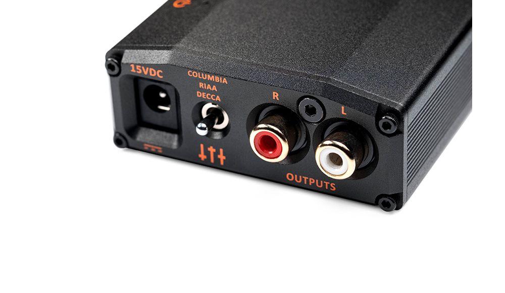 Davon lassen sich drei unterschiedliche EQ-Kurven nach dem weltweit anerkannten RIAA-Standard auf der Geräteunterseite vorwählen und mit dem Kippschalter auf der Frontseite aktivieren.