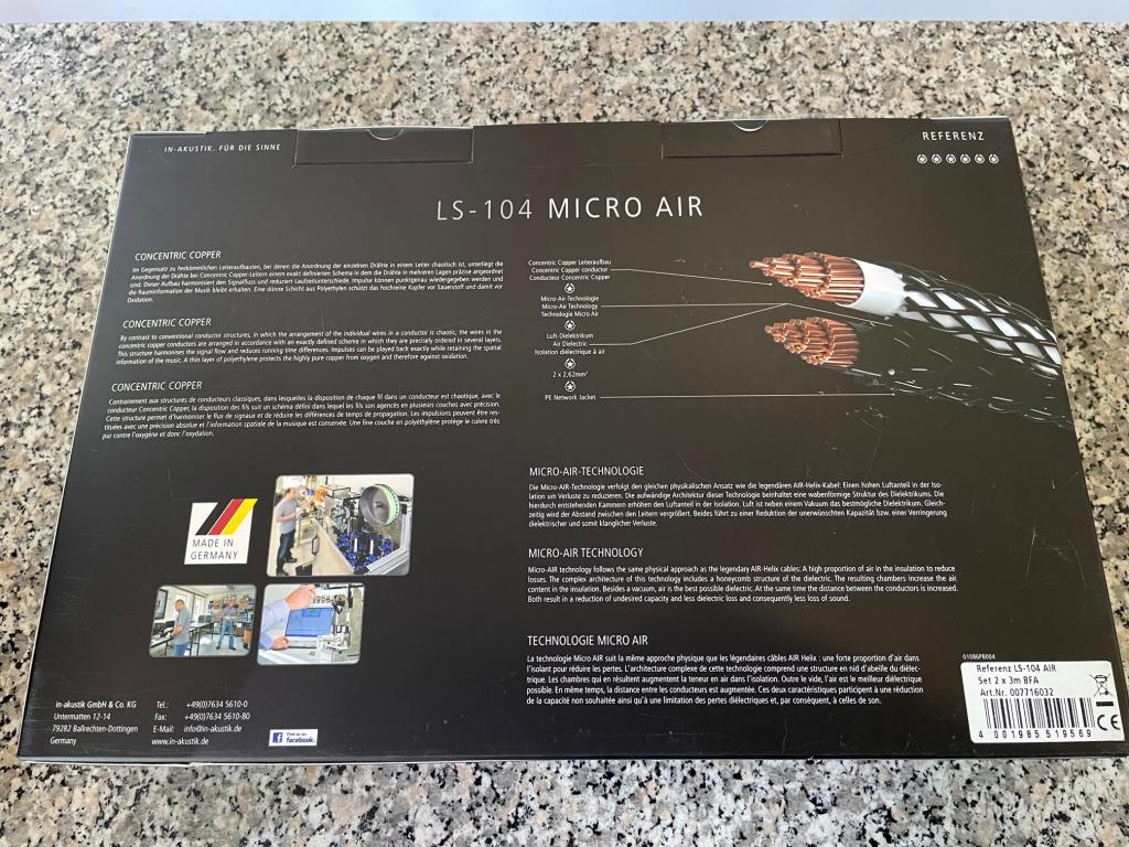 Einen hervorragenden Einstieg in die MICRO AIR Serie stellt das LS-104 dar.Es setzt sich bereits deutlich von Standardkabeln ab und zeigt welches Klangpotential in dieser Technologie steckt. Insbesondere sensible Verstärker harmonieren hervorragend mit diesem Kabel.Das REFERENZ LS-104 MICRO AIR steht für ein offenes und gelöstes Klangbild.