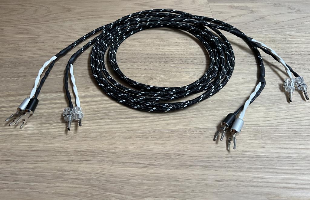 2 x 3 Meter, jeweils auf einer Seite konfektioniert mit Rhodium veredelten Referenz Bananas BFA-103 und Kabelschuhen KS-103 von Inakustik.