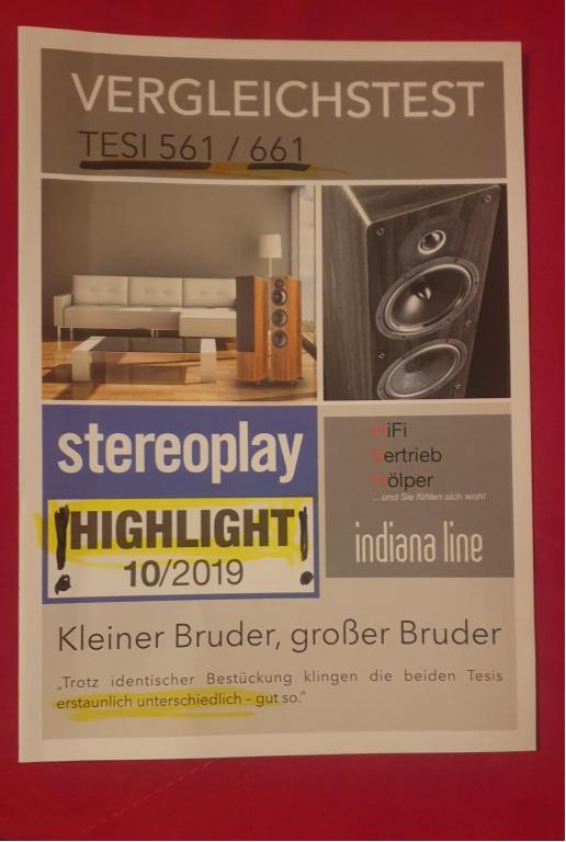 "Es gibt sie noch, die unschlagbaren Angebote. Lautsprecher die ihr Geld wert sind und neben tollem Klang auch eine schicke Optik bieten" konstatiert die renommierte STEREOPLAY und verteilt für unser letztes noch verfügbares Modell einer TESI 661 in edlem weiss Matt zum einmaligen Sonderpreis das begehrte HIGHLIGHT Prädikat.