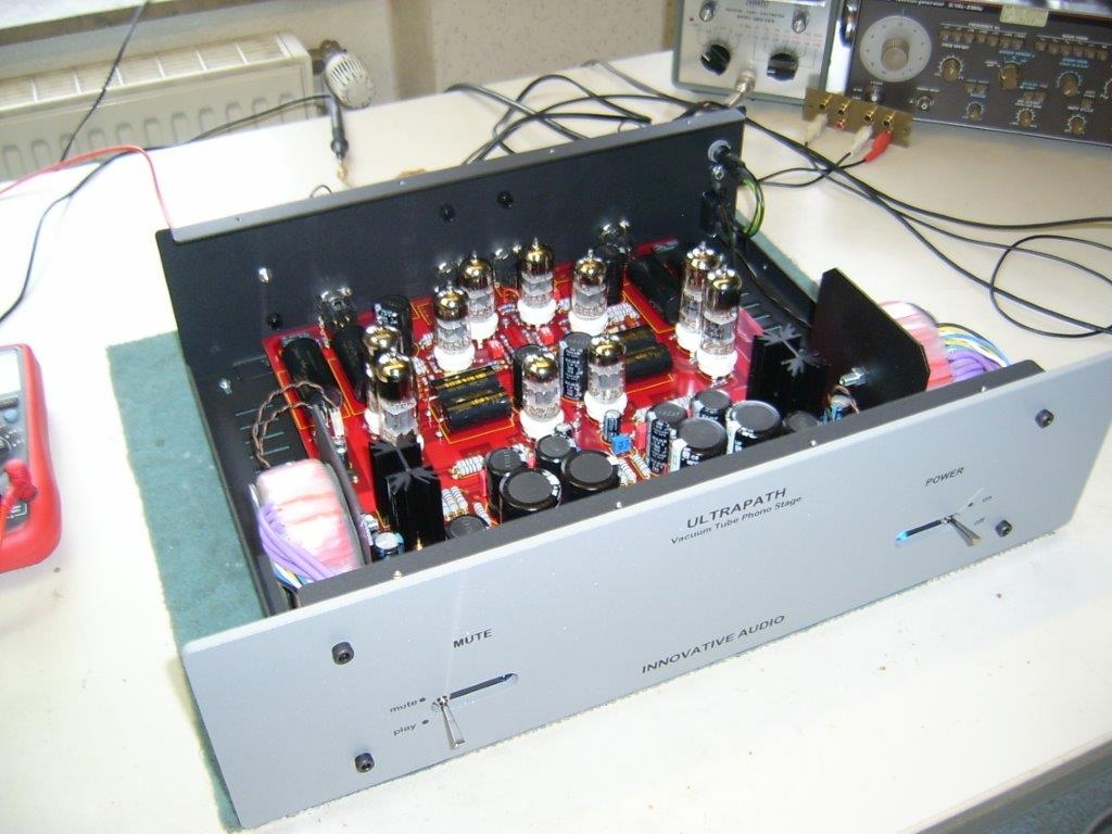Reference Phono symmetrisch mit externem Netzteil.Übertrager Silvercore Pro Reinsilber 1:10Höchste Ausbaustufe4 * 6922 gain stage2 * 6072 current source4 * 6H30 driver stageinnovatives schwimmendes RIAA Netzwerk Epoxyleiterplatte vergoldet, Mundorf Supreme Beste Bauteile,Verstärkung: 50 - 75 dB 7 Eingangswiderstände nach Kundenwunsch konfigurierbar.Dynamisch, hochauflösender, kristallklarer Klang.