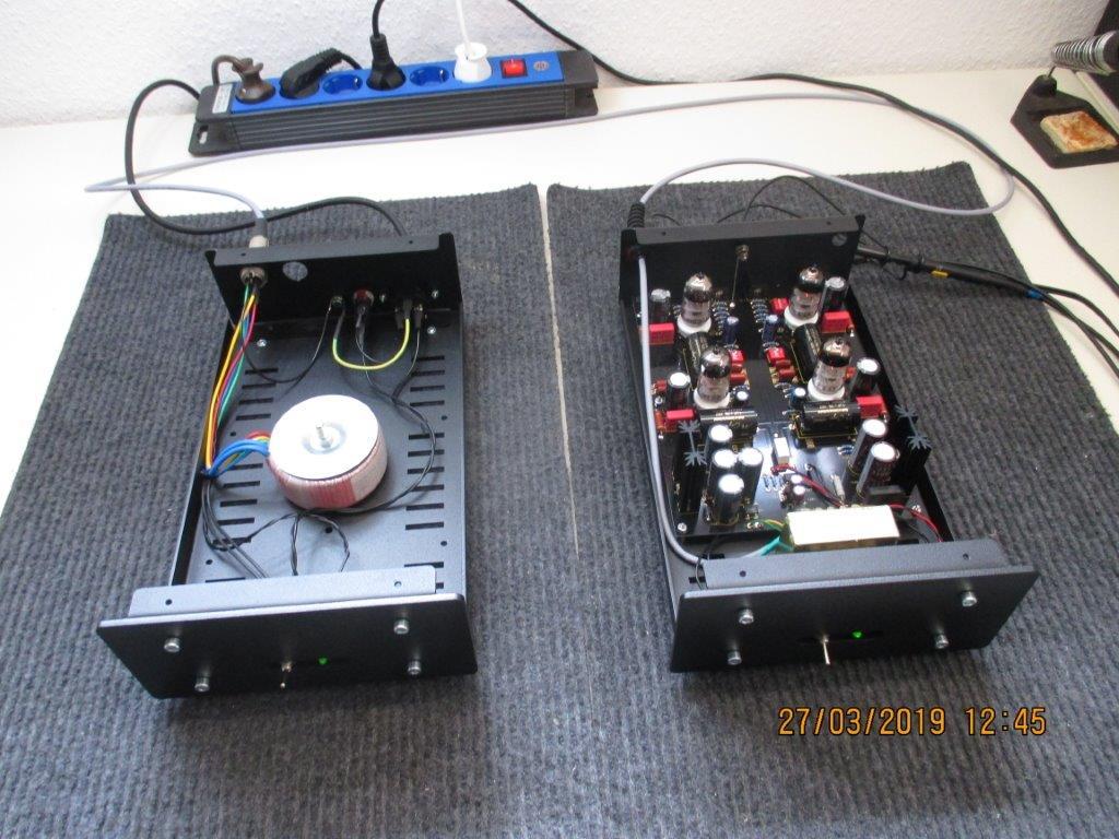 Vishay Widerständen, Mundor-Supreme Koppler, Spez. RIAA MKPEingangsstufe überarbeitet.DIY Röhrenphono mit besten gematchten Bauteilen aufgebaut, gemessene Röhren, Super präzise RIAA, 3 Verstärkungen, 40 - 63 dB, kann MM, high und low Output MC,