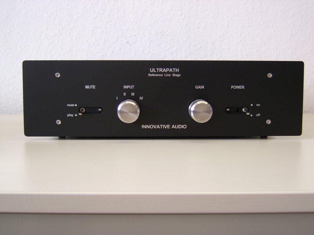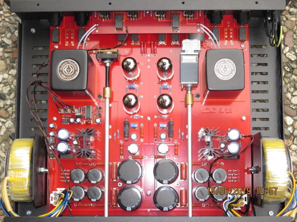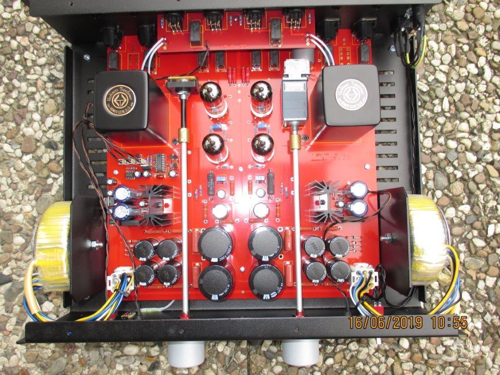 Unser ultimatives StatementTransformatorgekoppelte (Hashimoto) symmetrische Vorstufe, vollständiger Doppel Mono Aufbau, 4 Eingänge, 2 Ausgänge,Treibt 20 Meter Kabel, ideal für AktivboxenDynamisch und hoch auflösend, extreme Feinzeichnung.Nur beste Bauteile, 6H30 Supertubes, Leiterplatte mit Vergoldung, keramische Fassungen, PRP und Vishay Widerstände, etc