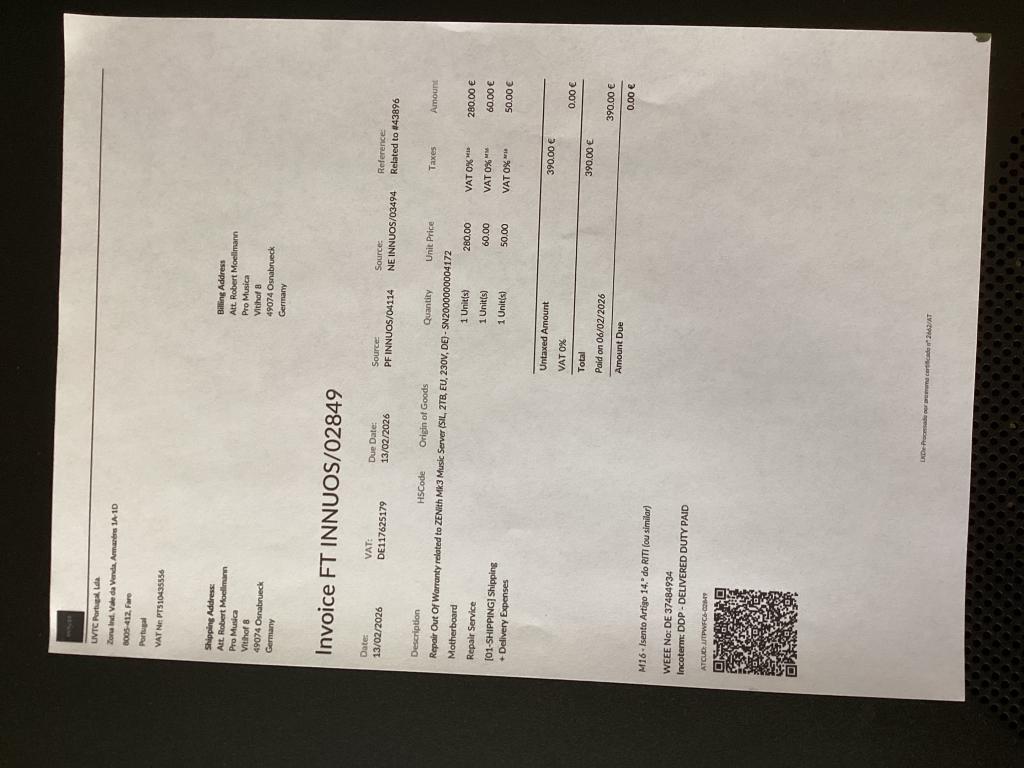 Das Gerät wurde von Innuos generalüberholt ( Refurbished ) siehe Bild