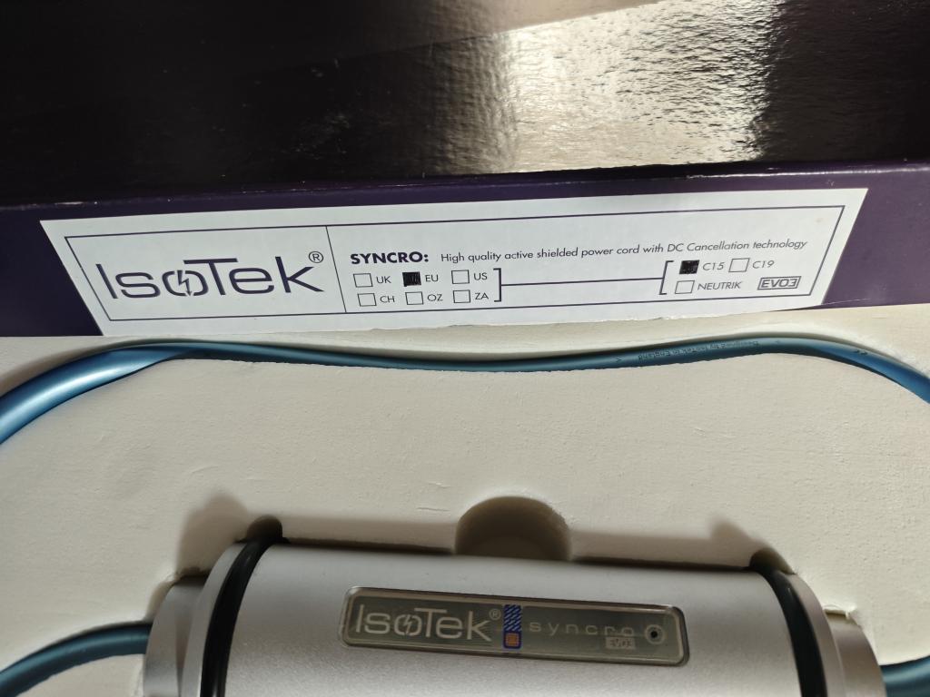 For sale is an excellently preserved IsoTek EVO3 Syncro power cable in the 2-meter version. This is one of the most respected high-end power cables on the market, renowned for stabilizing the mains phase through its innovative sinus-wave reconstruction technology. This effectively reduces hum loops and significantly improves the power supply to sensitive audio components.