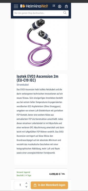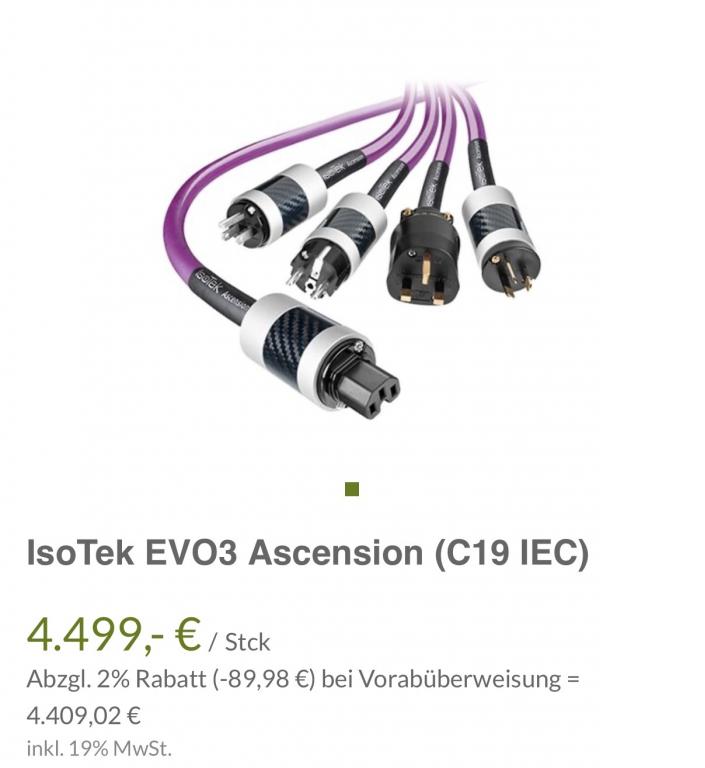 Verkaufe ein hochwertiges Isotek EVO3 ASCENSION Stromkabel mit SHUKO/C19-Anschlüsse.