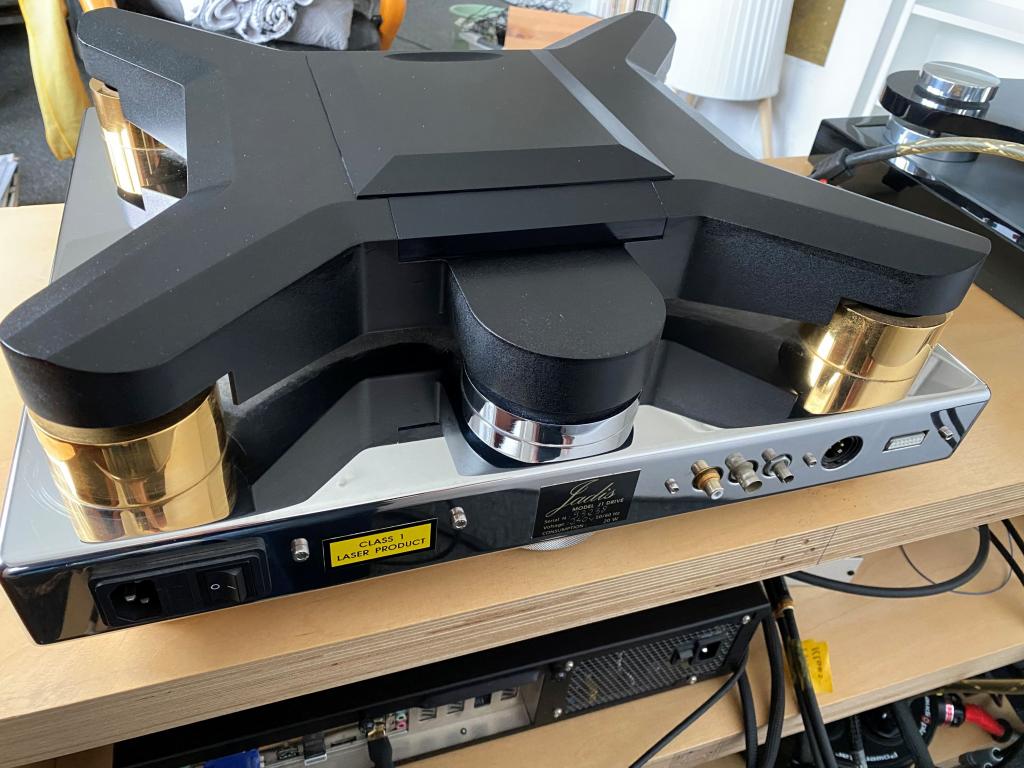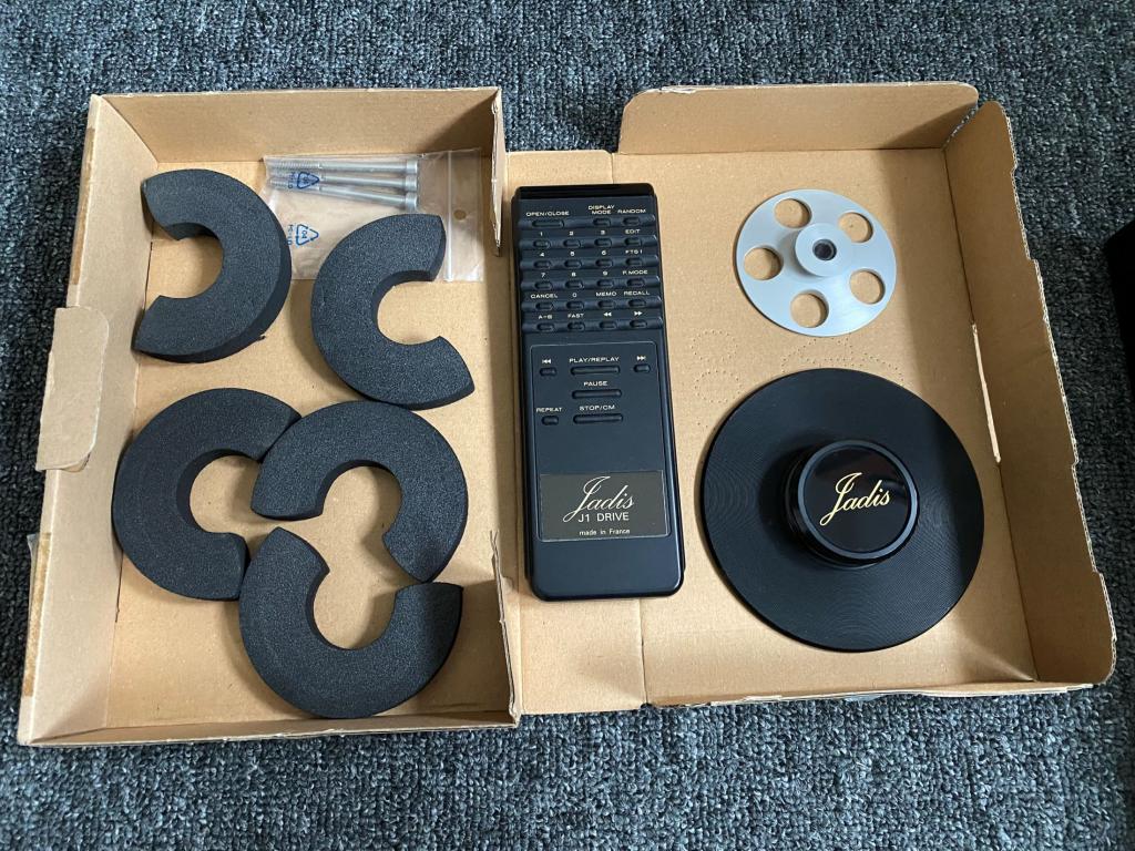 Verkauft wird das Laufwerk mit allem originalem Zubehör, wie FB, CD-Puck, BDA und Fixierschrauben für den Transport, aber ohne OVP. Zusätzlich gehört ein zweiter, sehr leichter aber extrem stabiler CD-Puck dazu, der im Cern Institut in der Schweiz speziell für den J 1 angefertigt wurde und dem Jadis Puck klanglich deutlich überlegen ist.