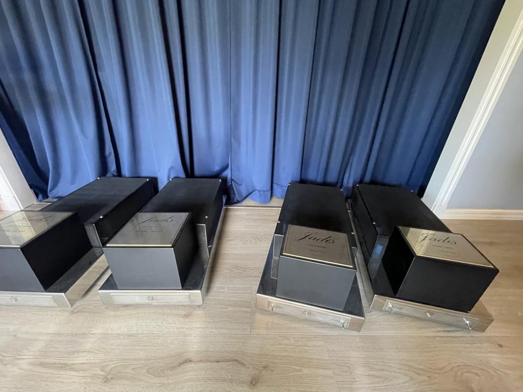 Flagship power amplifier. The JA500 is made of 4 blocks: two for power supply and two for amplification, it has the same number of tubes as the JA800 had but has improvements in reliability and ease of set up. These power amplifiers can delivers a mind-blowing 350 watts per channel.