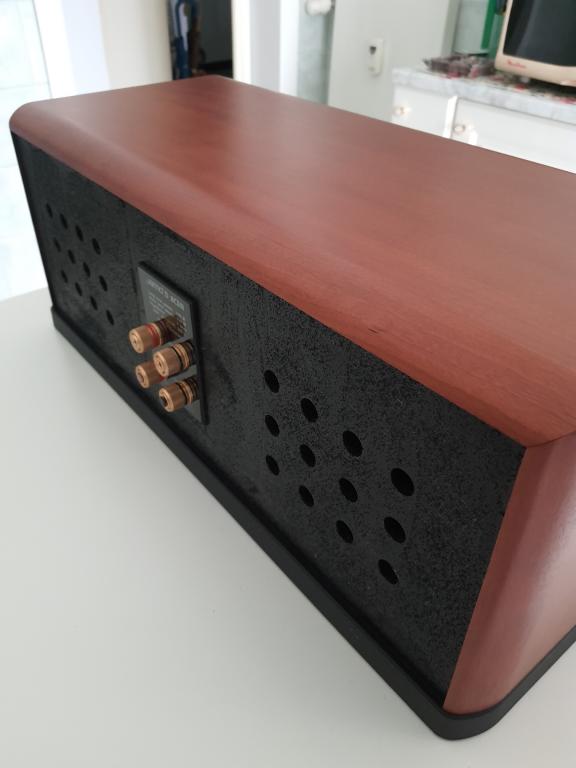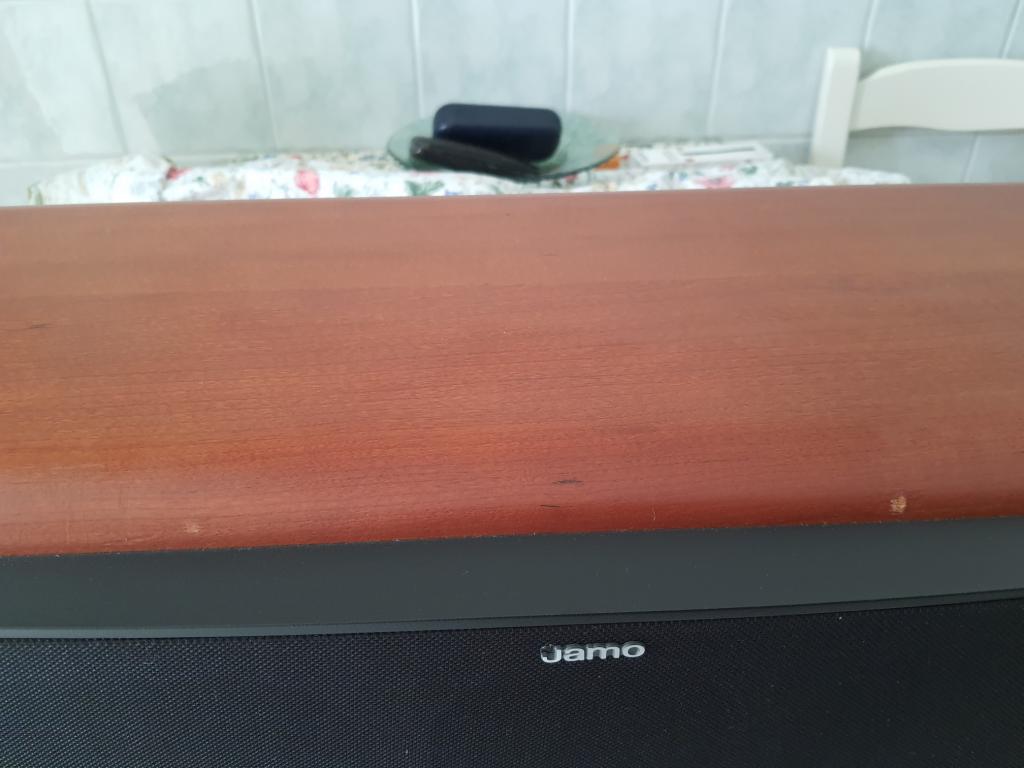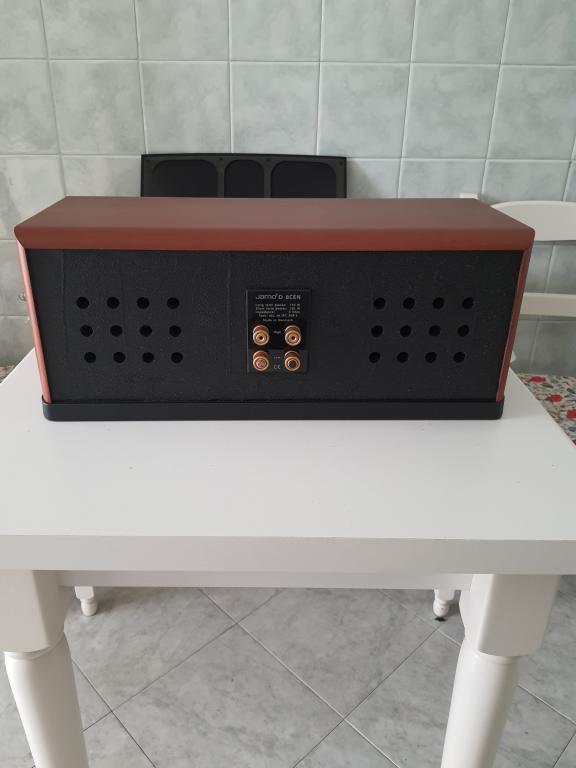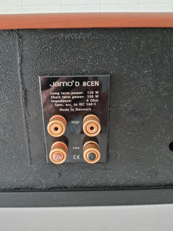 Up for sale Hi End HT central speaker Jamo D 8CEN, perfectly working. Aestetically speaker has some marks on upper edge, as shown in pictures, doesn't have foam on back panel, as in pictures, and the base of the connector at top left moves slightly to right and to left. This doesn't affect the cables placement neither sound quality.