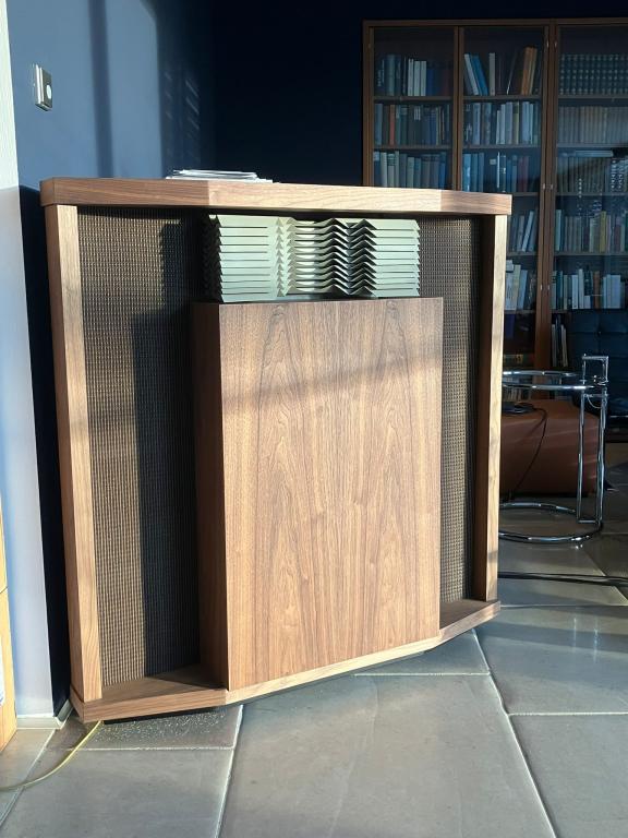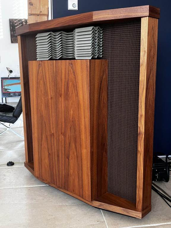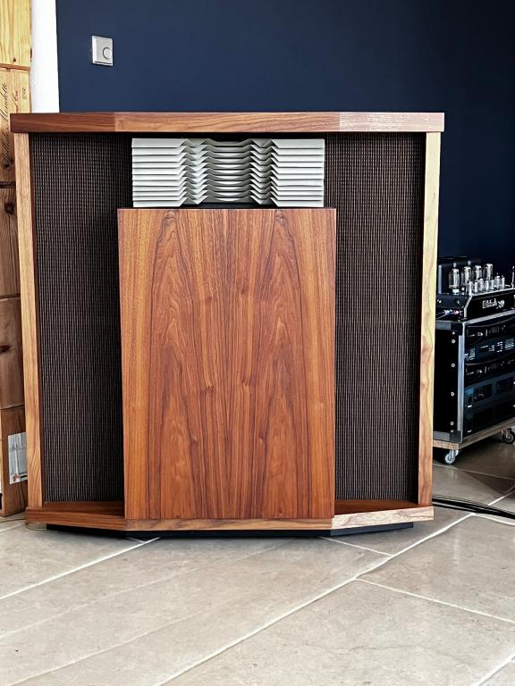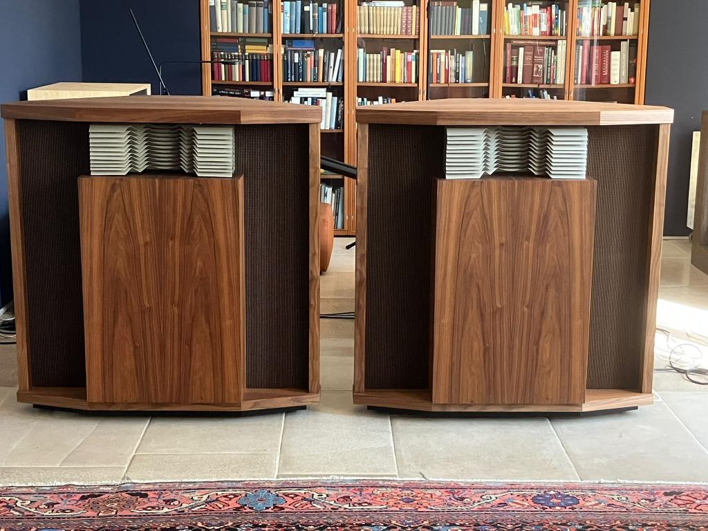 Due to changes in our living room, we are offering an immaculate and outstanding pair of the iconic JBL Hartsfield speakers. These are absolute exact repros built from scratch after the original drawings by the, already in certain circles known builder of the Paragon, hornclassic.de;