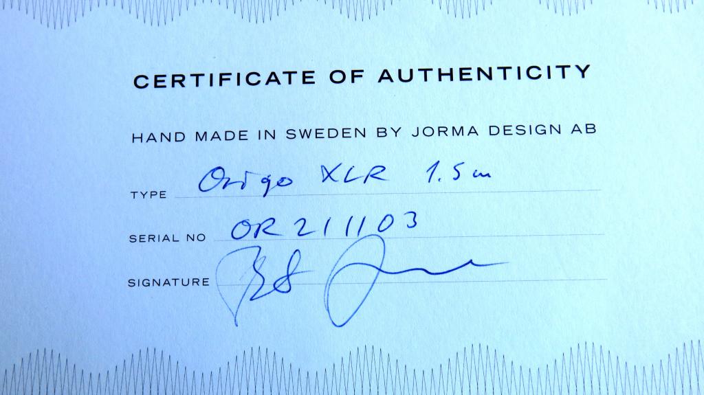 Jorma Design Origo XLR 2x1,5m mit Echtheitszertifikkat und original Koffer
