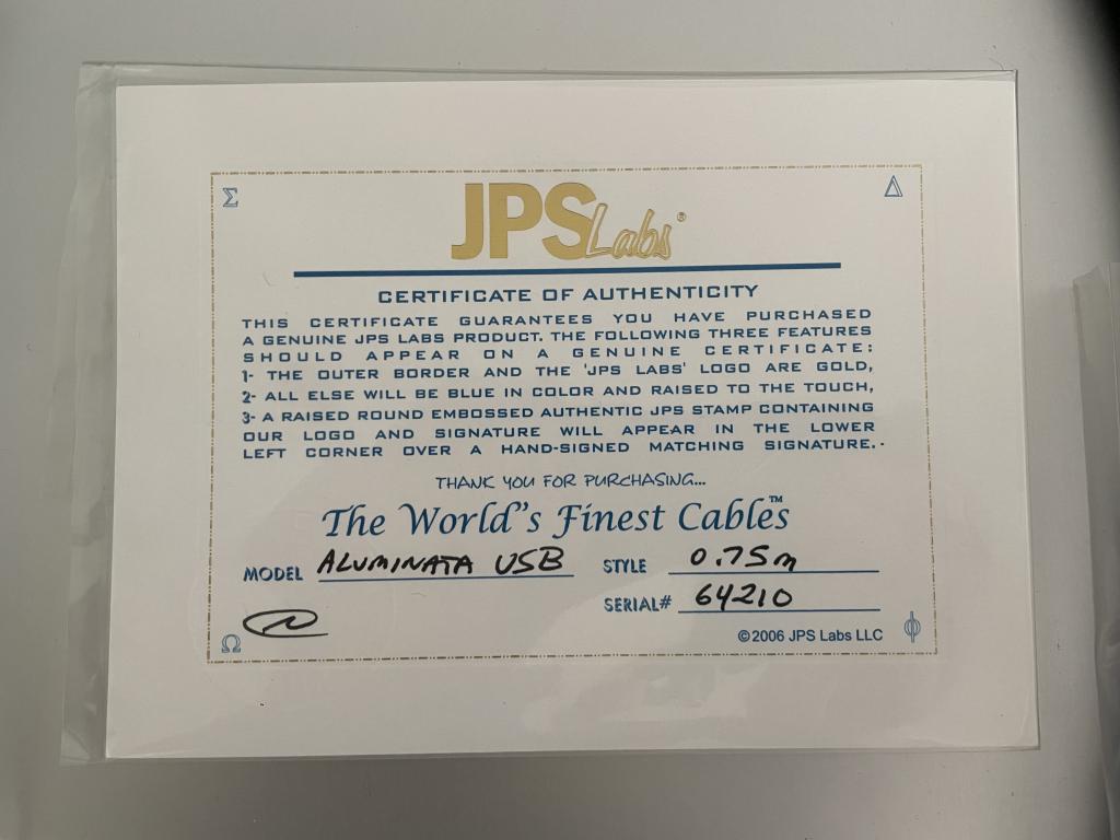Hier wird ein Top Hi-Fi JPS USB Kabel Aluminata A-B angeboten. Neupreis Euro 1700.-