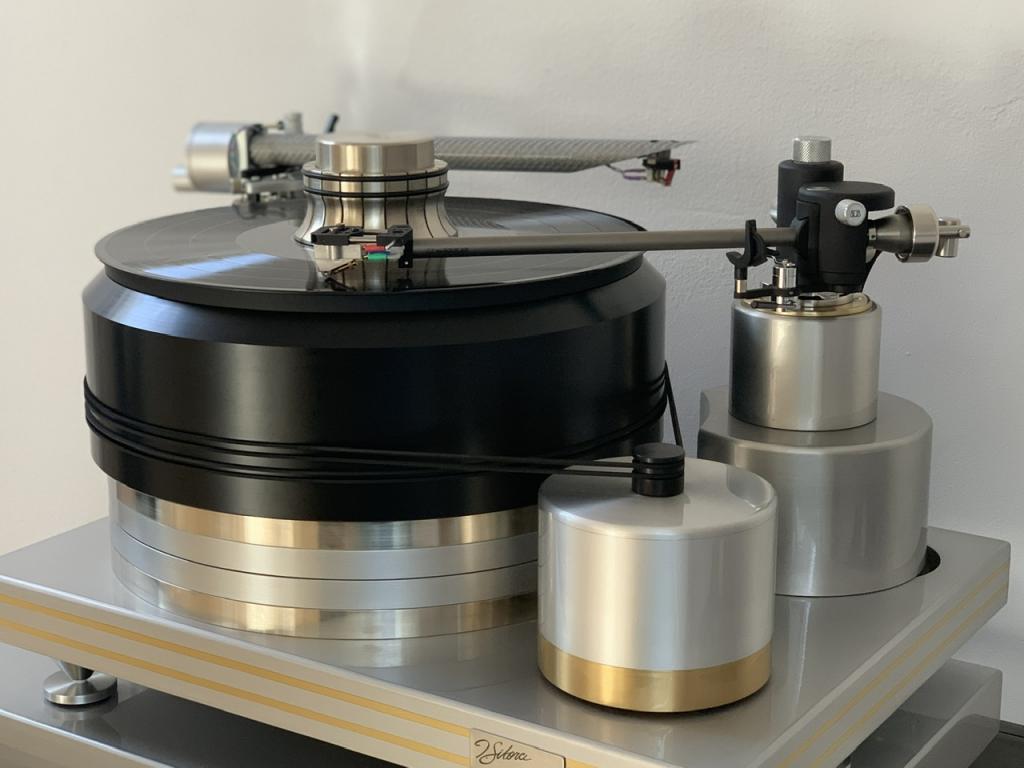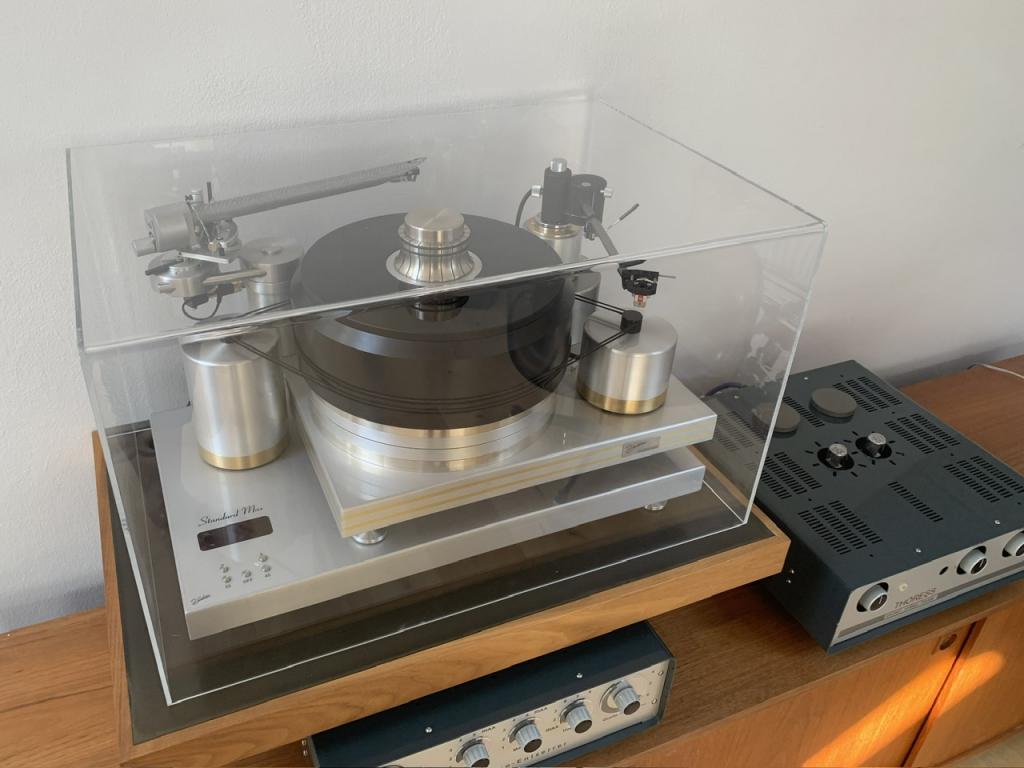 I’m the first owner, it’s in mint condition, includes the record weight, the original huge wooden box, and also the clear acrylic cover made for this turntable as a special delivery from Sikora. The tonearms and cartridges shown are not part of the sale.