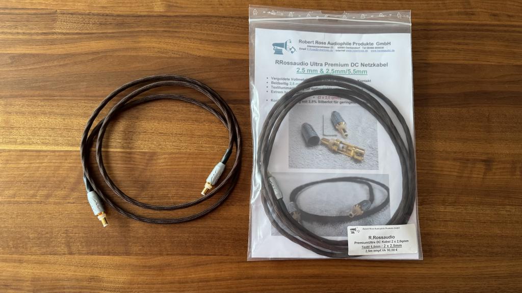 Inkl. 2 Rossaudio Ultra Premium DC Netzkabeln in den Längen 1m (€ 60,-)und 2,5m (€ 90,-).