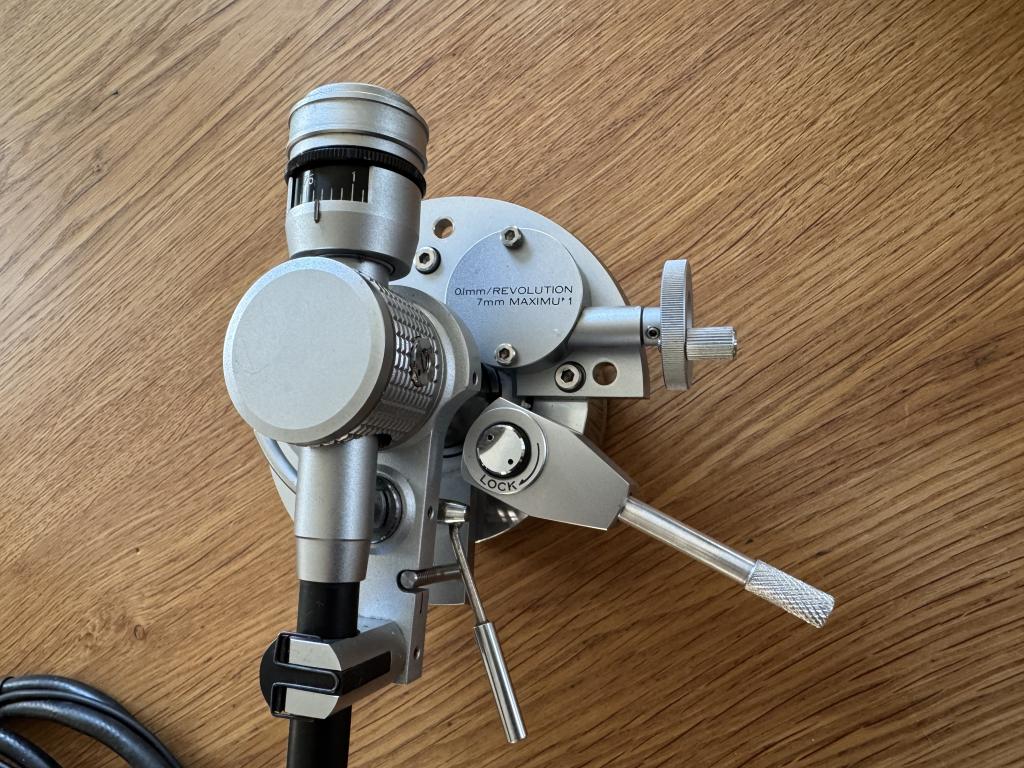 Absolut seltene Gelegenheit, einen Kenwood TA 07J in nahezu neuwertigem Zustand zu erhalten. Der Tonarm hat vorsorglich eine Überprüfung aller technischen Parameter bei Herrn Peter Feldmann (Bad Homburg) erhalten und befindet sich daher in vollständig einwandfreiem Zustand. Der Kenwood TA 07J zählt aus guten Gründen zu den überhaupt besten Tonarmen, allerdings nur unter der Maßgabe, dass von Vorbesitzern kein "Pfusch am Bau" betrieben wurde, ein Problem, welches auch aufgrund der Komplexität des Tonarms leider nicht die Ausnahme ist.