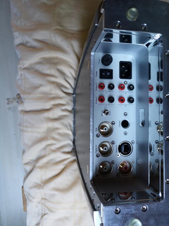 Subsystem der Firma Kharma Satelliten Sub Woofer Das Highlight des Subwoofers wird als Multi-Input-Umschalter mit zwei Eingängen vorgeschlagen, einem digitalen und einem analogen, man kann einen CD- und einen Player oder einen Streamer anschließen, der digitale Eingang kann auch für digitale Komponenten verwendet werden, auf Wunsch kann ich weitere Fotos machen