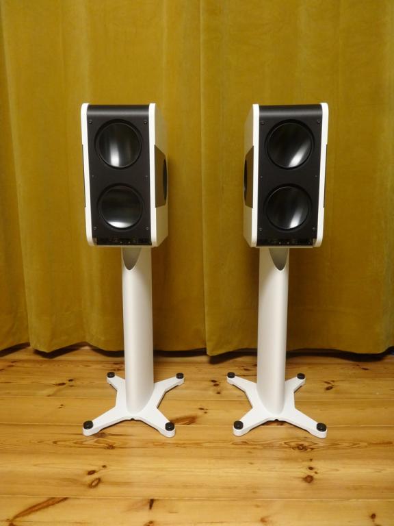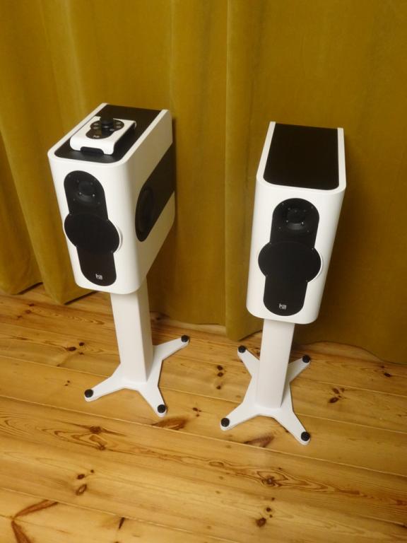 I'm including a pair of Dynaudio 20 stands, in white color to match aestethics of the speakers. There are also two extra top plates for the stands, custom made from laser-cut steel for perfect fit and support of the Kiis. In my opinion these stands look much better and more modern than the classic "two black pipes" stands by Kii Audio. However, if you prefer the stands can be excluded from sale, which would reduce price by 400 EUR.