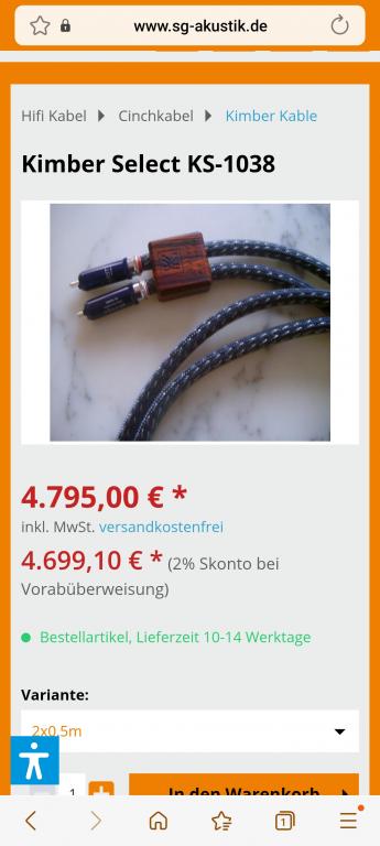 Kimber Kable KS-1038 AG 0,5 Meter 2395 Euro