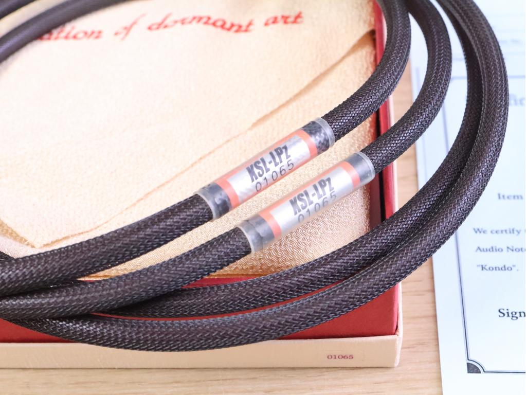 One pair of Kondo Audio Note KSL-LPz high end silver audio interconnect cables in a fantastic condition. The length is 1,0 metre and they have the original Kondo RCA connectors. Serial number is 01065. The original box and certificate cards are included. Check our other listings for more interesting items. Free shipping worldwide!