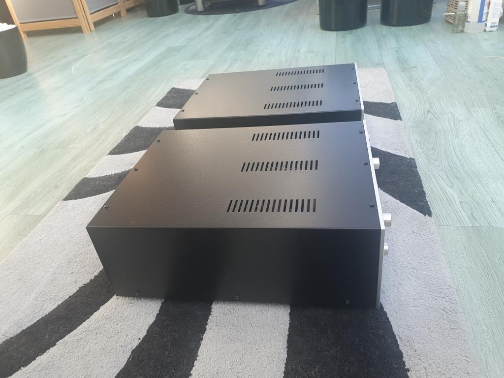 Neu beim MkII: Die getrennten Netzteilverbindungen für Line- und Phonostufe wurden zu 2 Kabeln zusammengefasst. Die Phonostufe kann jetzt auch später nachgerüstet werden. Wer symmetrische Quellen oder Endstufen anschliessen möchte, kann jetzt seine XLR-Kabelverbindungen verwenden. Die Frequenzweiche für den Subwooferausgang wird mit Halbleitern realisiert.
