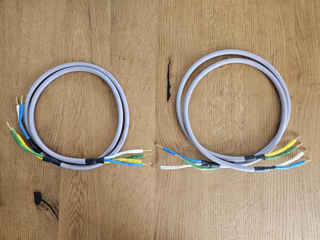 Biete Kondo Operia SPC 2.5 Bi-Wiring Kabel in 2.5m Länge incl. Verbindungskabel für die externe Frequenzweiche der Living Voice OBX Modelle. Die Länge der Verbindungskabel ist 1m.