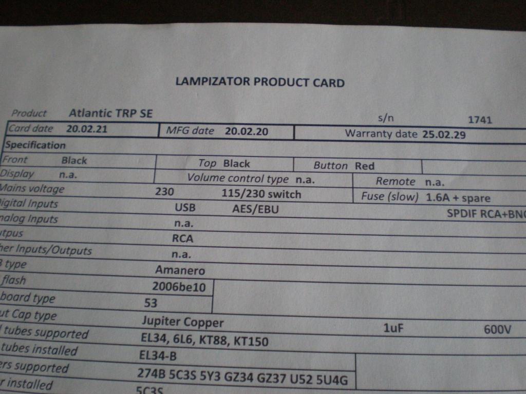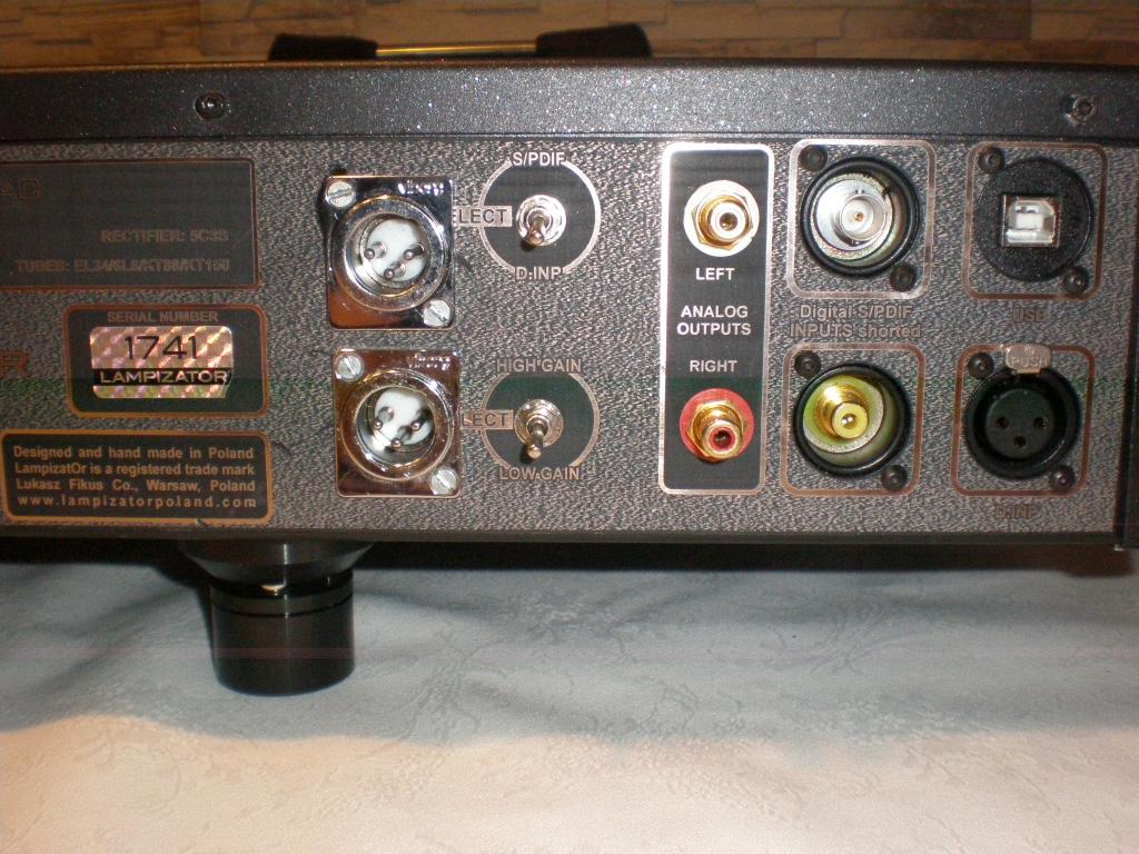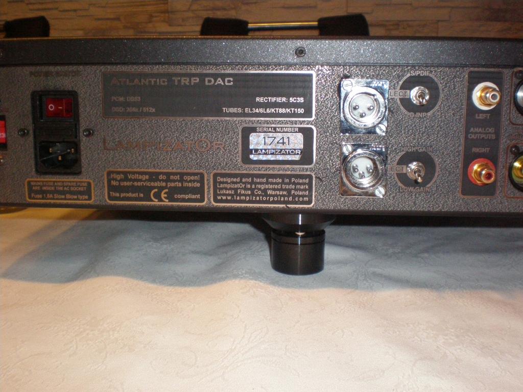 Verkaufe einen "LAMPIZATOR Atlantic TRP DAC". Der DAC wurde am 20.02.21vom Vorbesitzer gekauft. Ich bin der zweite Inhaber. Bei dem DA-Wandler wurdendie Röhrensockel gegen die besten von Yamamoto getauscht, gekauft bei JACMUSIKweil die Originalsockel nicht hochwertig waren und Wackelkontakte hatten. Jetzt sitzen die Röhren bombenfest!Es wurden auch nachträglich sehr hochwertige "Viborg CF203R XLR Socket Rhodium-plated (Square)" eingebaut, weil meine Verstärker nur XLR-Eingänge haben. Die RCA-Buchsen sind stillgelegt, aber man kann die Drähte umlöten.Die Gerätefüße wurden auch gegen gute mit Edelstahlkugeln ersetzt, die originalFüße lege ich bei. Die Röhren sind nicht mal 1 Jahr alt. Die PSvane "PS-A274B" und 4 Mached PSvane EL34PH Classic sind auch im Preis mit dabei Der DAC und die Röhren sind in sehr gutem Zustand und spielen alles bis DSD 512. Der Originalkartonist vorhanden. Bei Selbstabholern gewähre ich einen Rabatt von 150 €.