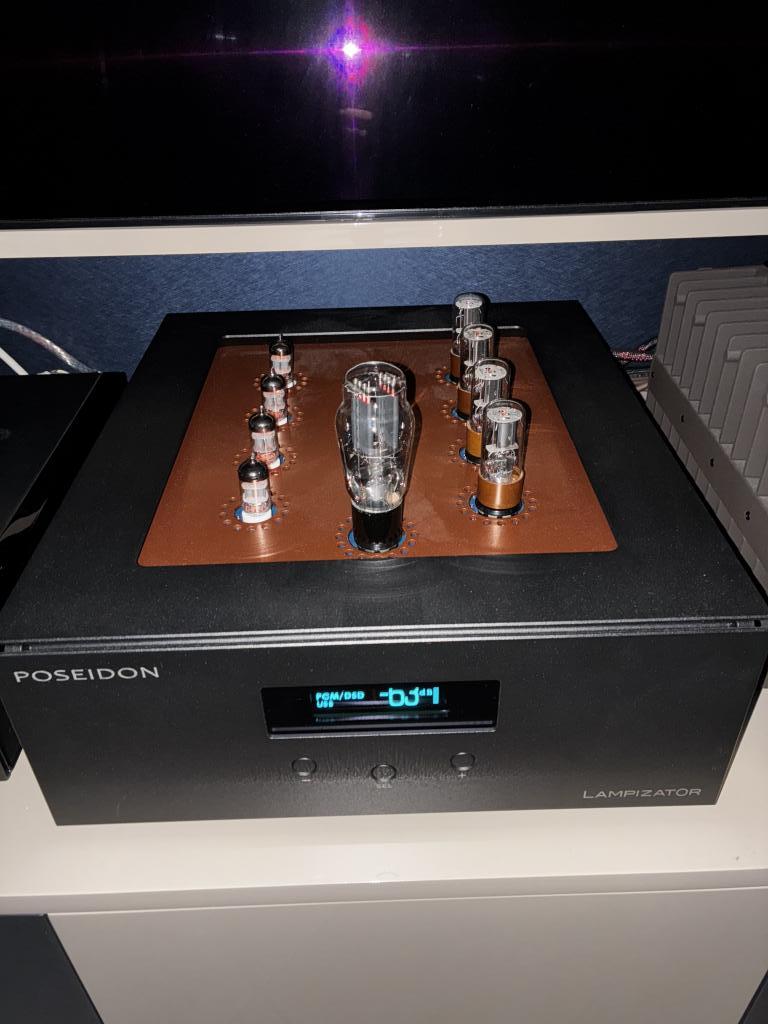 We are selling Lampizator Poseidon DAC. Comes from first owner, it is in mint condition and comes with original flight case and accessories. Comes with factory installed Marconi GEC L63 tubes.