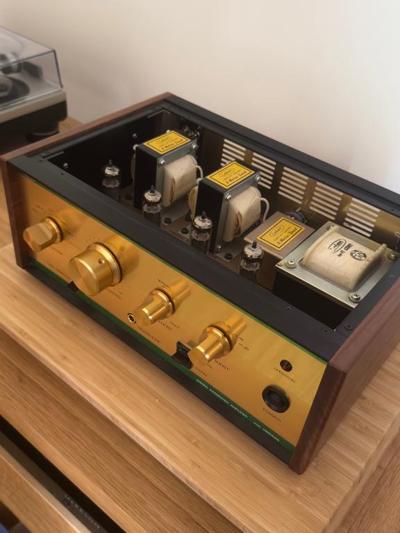 Momentan sind NOS Röhren verbaut: Eingangsröhren 2x RCA Military, Ausgangsröhren 4x EL84 von Ei Yugoslavia, gestempelt von Siemens.