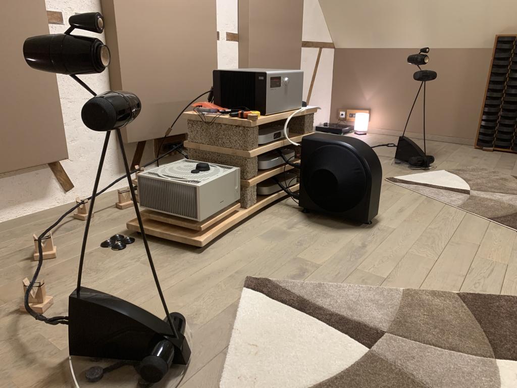 They can be sold with or without the subwoofer ( without a subwoofer it is essential to play with the proximity of the side and rear walls in an average-sized room to have a correct bass level. In the majority of cases, including in a small room, I recommend combining them with the 20.1 subwoofer designed to accompany them. The price will be 7500€ for the e2glass alone and 2500€ for the subwoofer (last prices).
