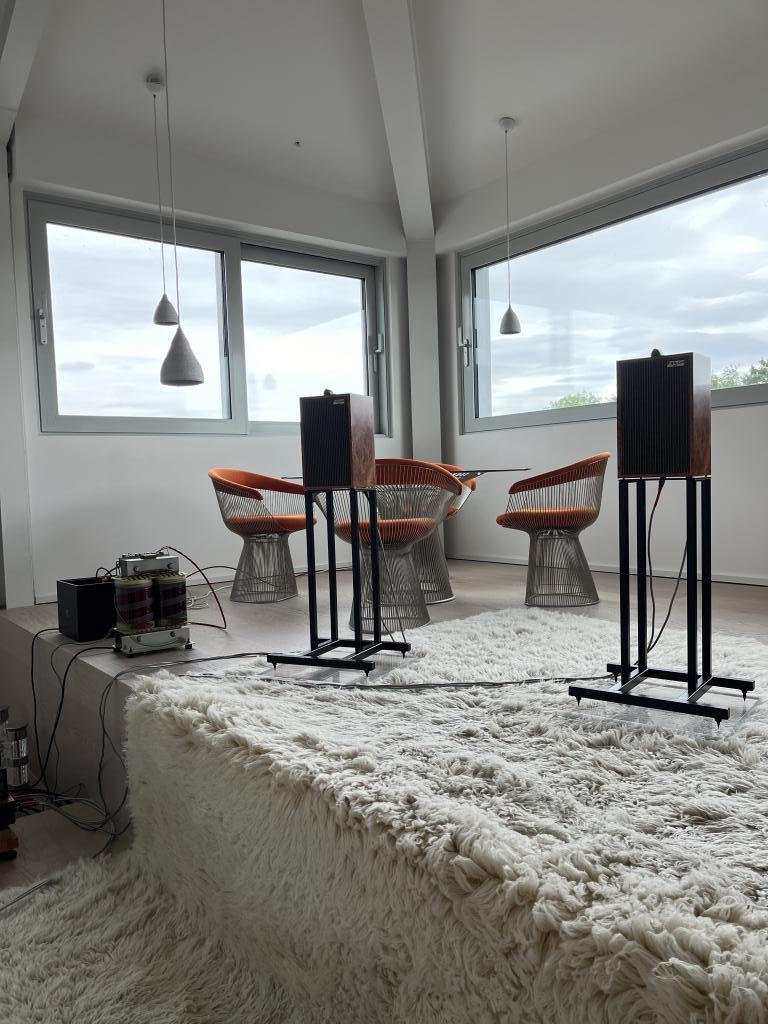 zusätzlich mit vier High End Spikes aus der Schweiz sowie 8 Dämpfungspads zwischen Lautsprecher und Ständern