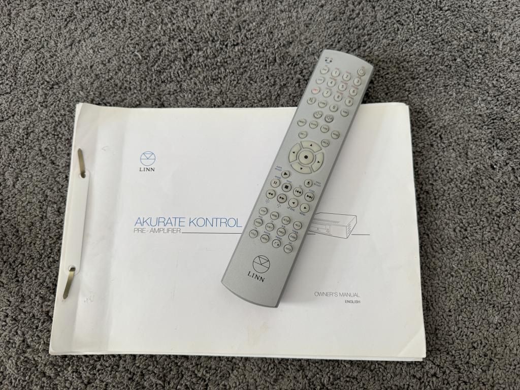 Im Lieferumfang enthalten ist: Linn Akurate Kontrol, Fernbedienung, Netzkabel, Anleitung und eine neutrale Verpackung.