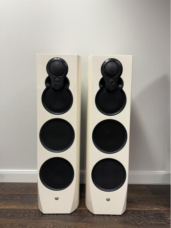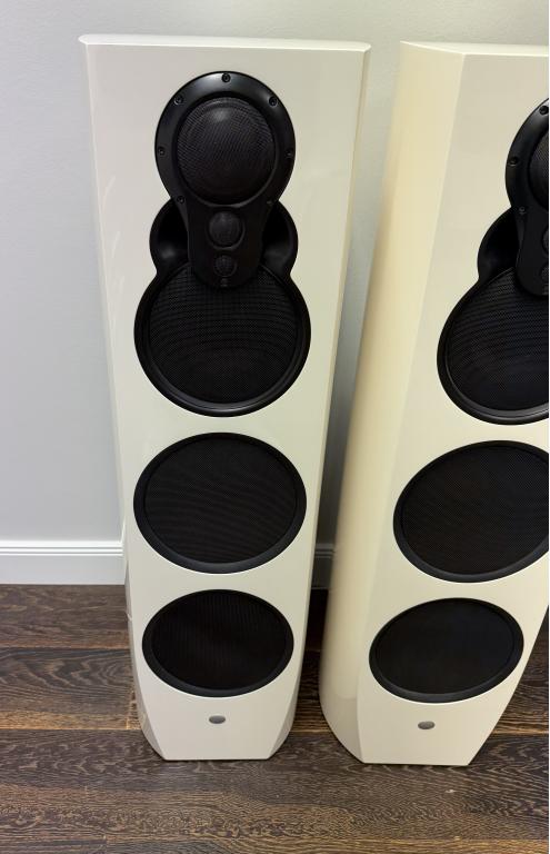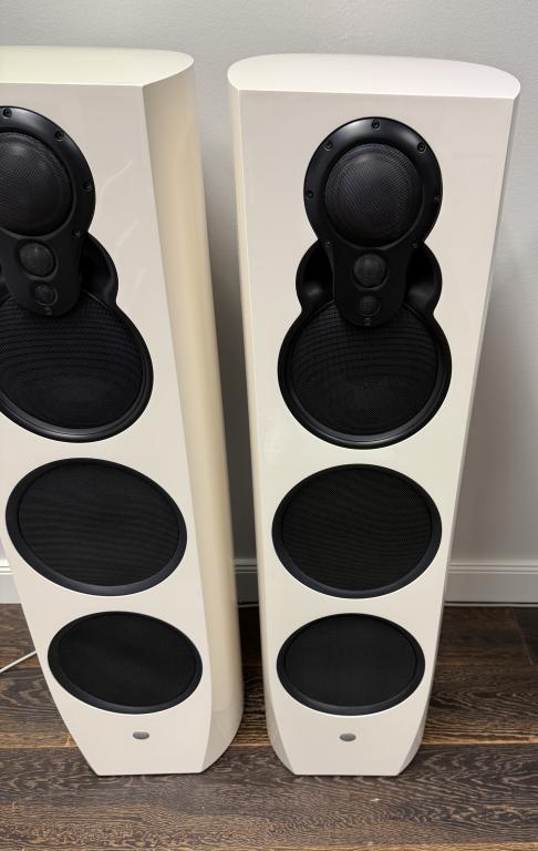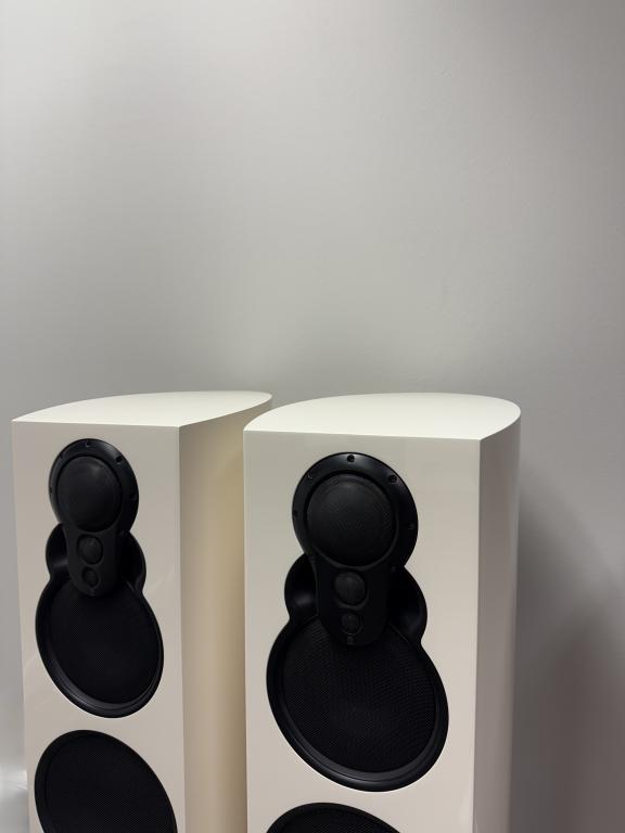 Finish: High-gloss white with black 3K arrays and black stands (bases), Organik Upgrade.