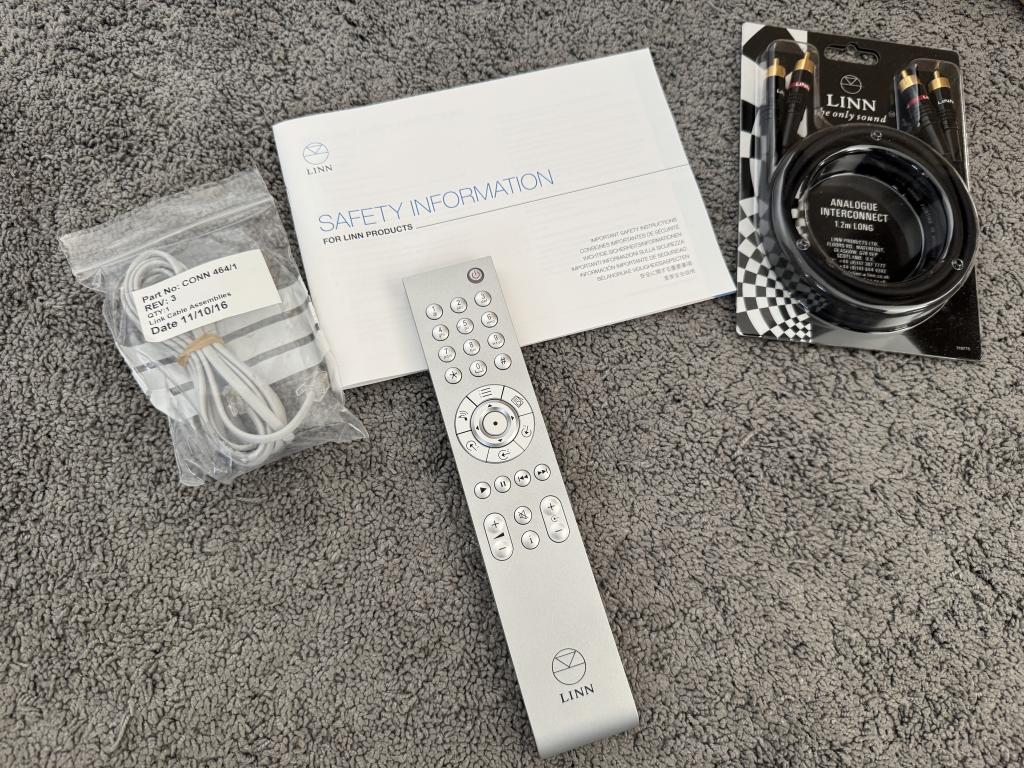 Im Lieferumfang enthalten ist: Linn Majik DS/2, Fernbedienung, Netzkabel und die originale Verpackung.
