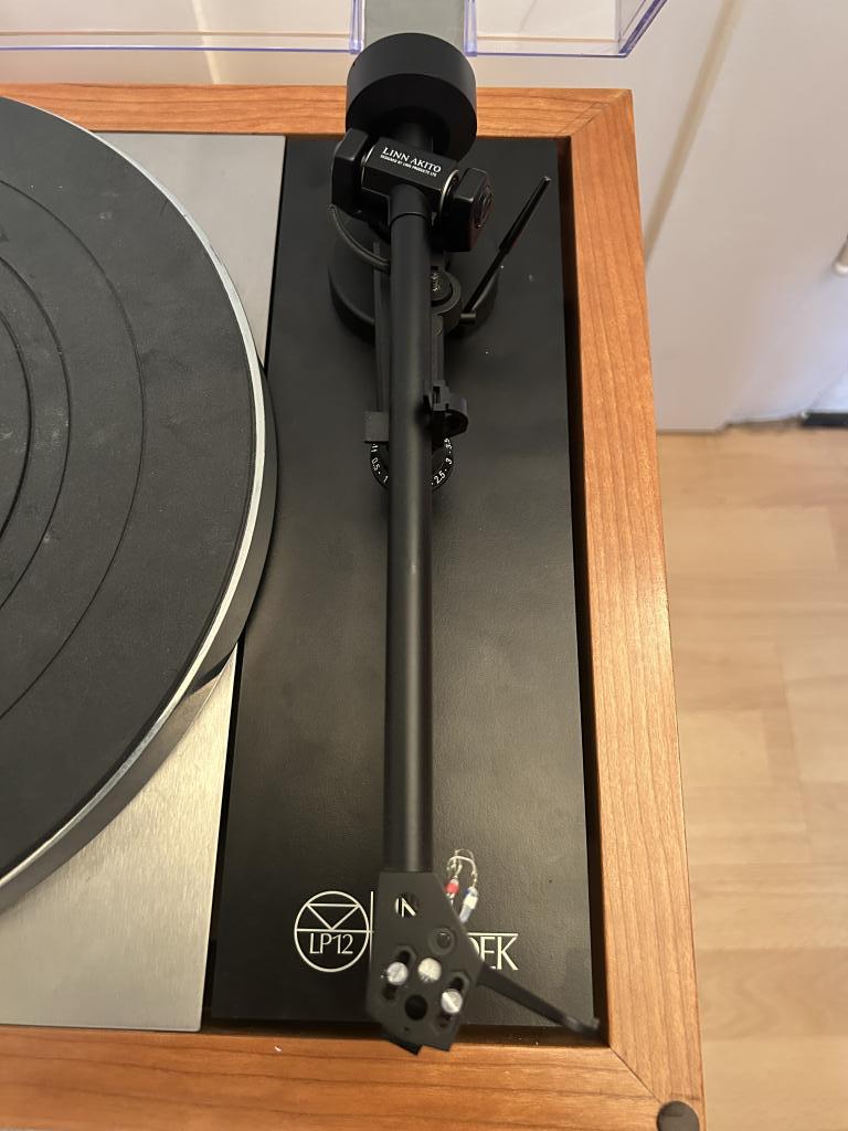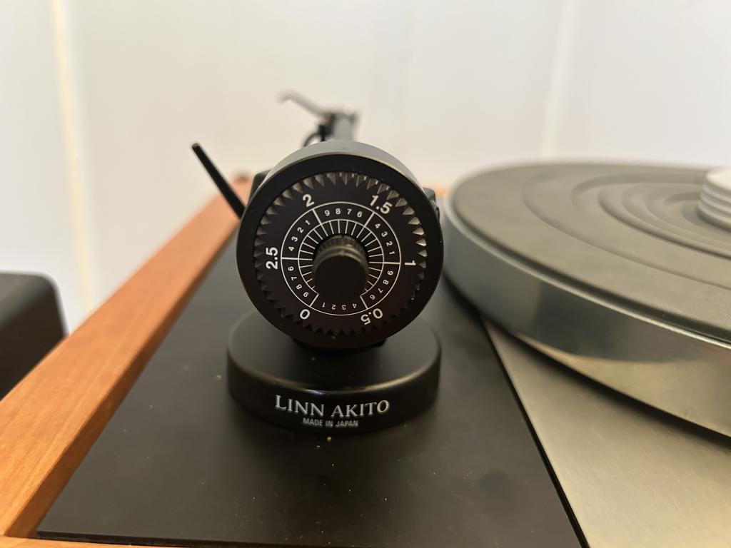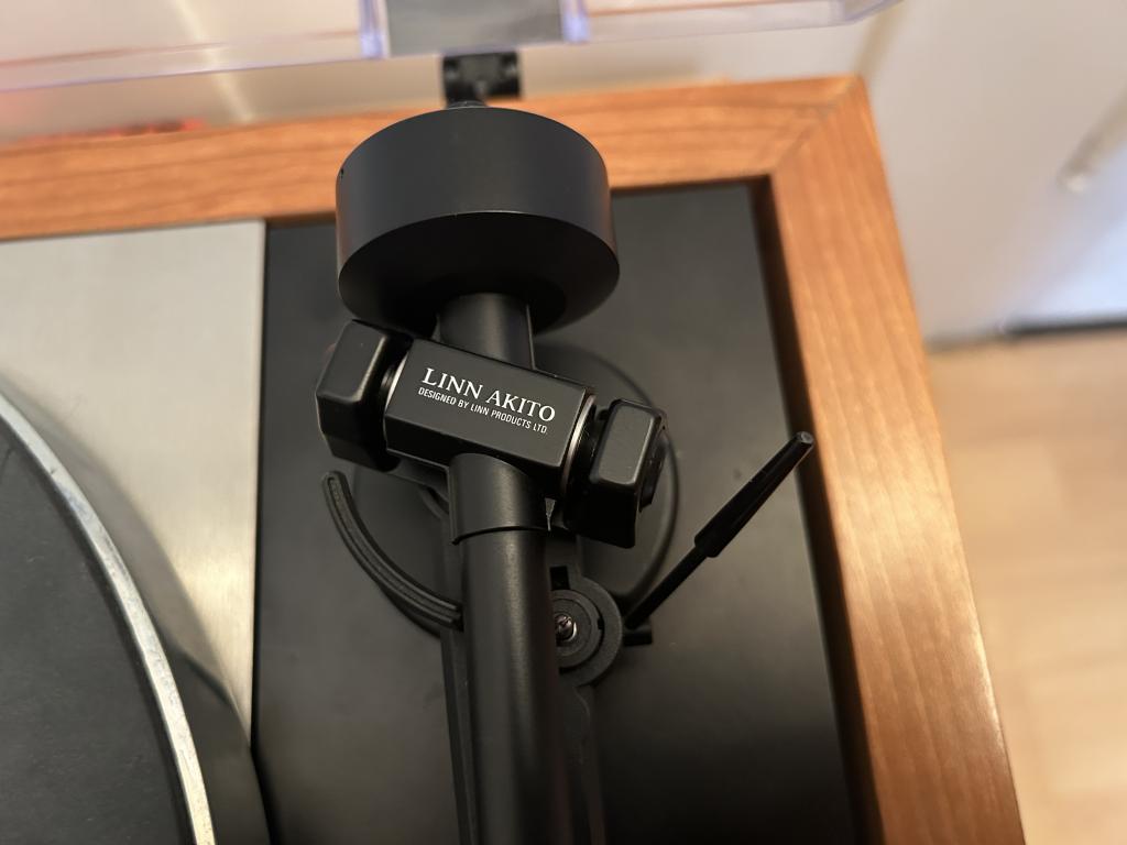 montiert ist ein Linn Akito Tonarm mit Silberlitze konfektioniert,