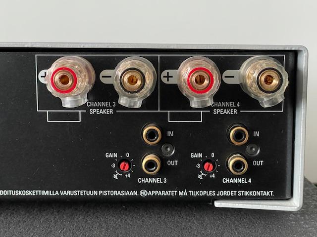 Das Gerät ist sehr gepflegt und großzügig ausgestattet: 4 Kanäle mit jeweils 100 Watt - schnell, leistungsstark, rauscharm, immer präzise und kontrolliert. Und sehr variabel: geeignet für Single-Wiring, Bi-Wiring und Bi-Amping sowie für den passiven und aktiven Betrieb.