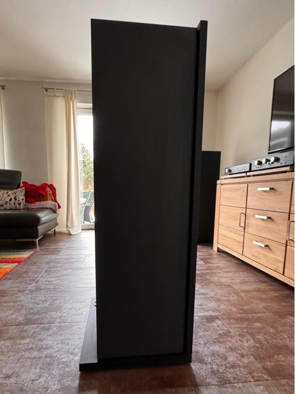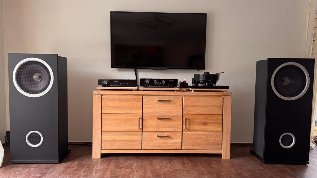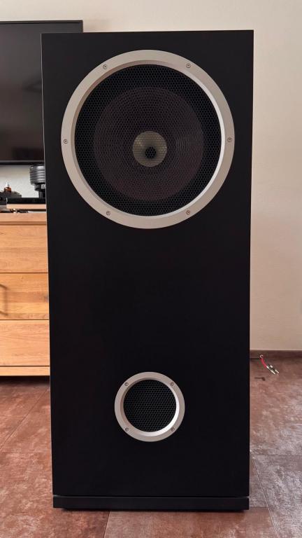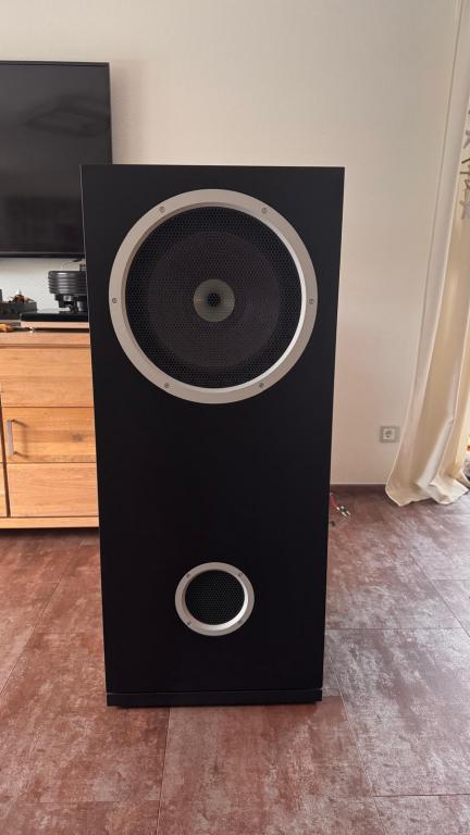 Schwerer und grosser Lautsprecher mit livehaftigem Klang der auch in relativ kleinen Räumen und auch wandnähe betrieben werden kann.