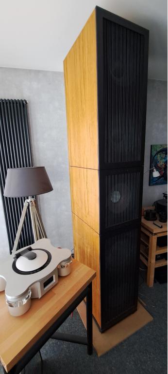 Extrem aufwändiges und solides Gehäuse, in Summe 4x Bassgehäuse und 2x Koaxgehäuse.