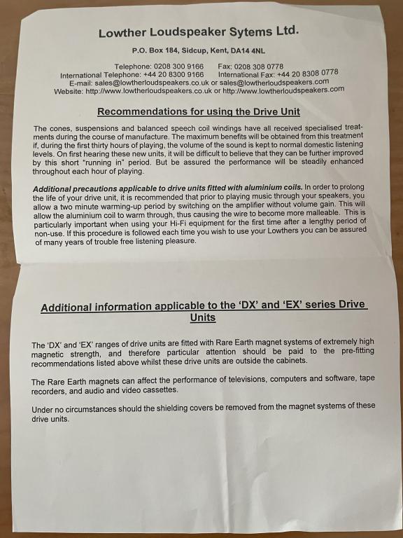 For sale : pair of Lowther DX3 Silver full-range drivers (Silver coil version).