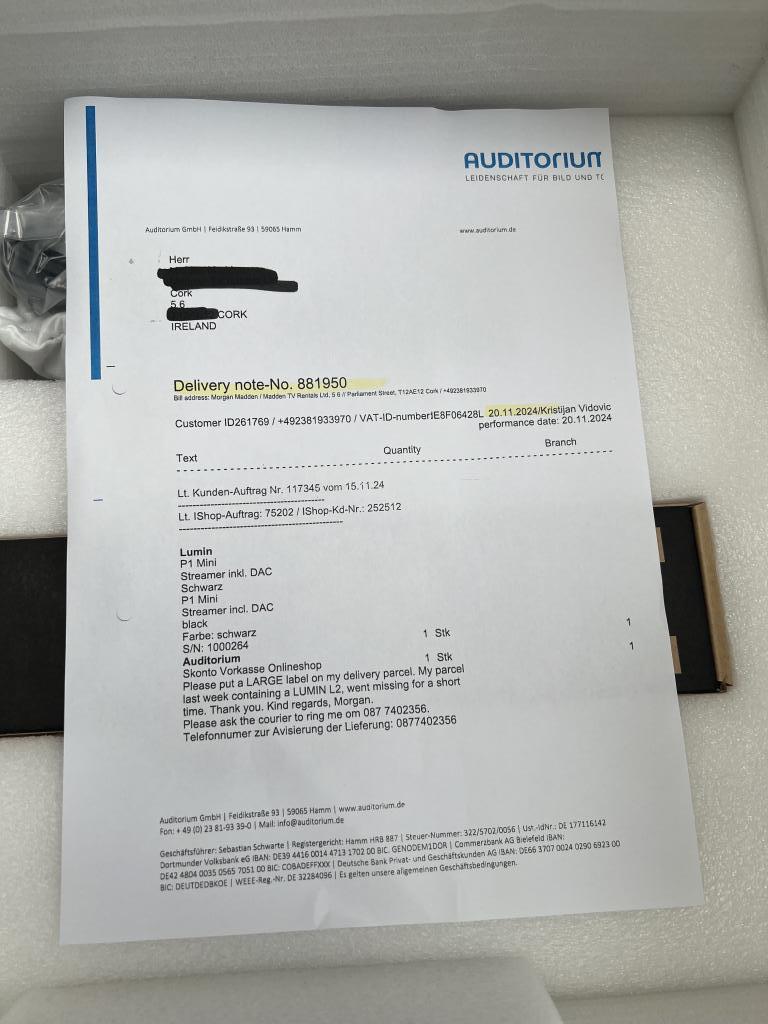 Absolutely, like brand new! Only 12 months old - See "Auditorium" delivery paperwork (From Germany) in the photos. The remote control was never ever even used, as I controlled the volume for this Lumin, from my iPad. It's without a mark or a blemish - See photos!