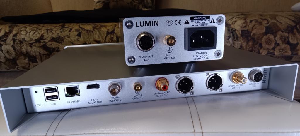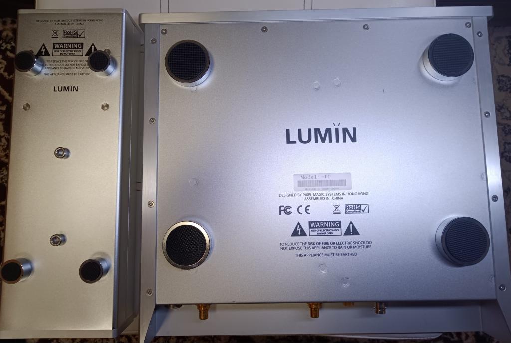 LUMIN T1, Streamer/DAC. It is built on the legendary Wolfson WM8741DAC chip, of which it contains 1 per channel, with Lundahl LL7401 transformers. Outstanding technical content and sound in its category.