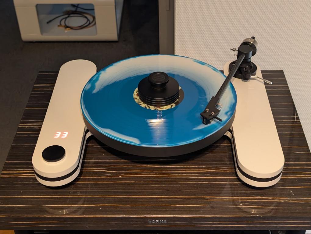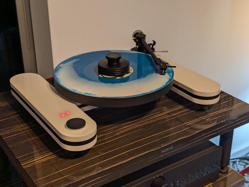 Der vibrationsarme Synchronmotor wird über eine mikroprozessorgesteuerte Motorelektronik mit präzisen Sinus- und Cosinuswellen versorgt und erzielt dadurch eine hohe Laufruhe und präzise Drehzahlen. Vor Auslieferung wird die Motorsteuerung individuell auf den jeweiligen Motor angepasst. Der Motor ist von der Plattenteller- und Tonarmeinheit entkoppelt, so dass keine mechanischen Einflüsse die musikalischen Informationen stören.