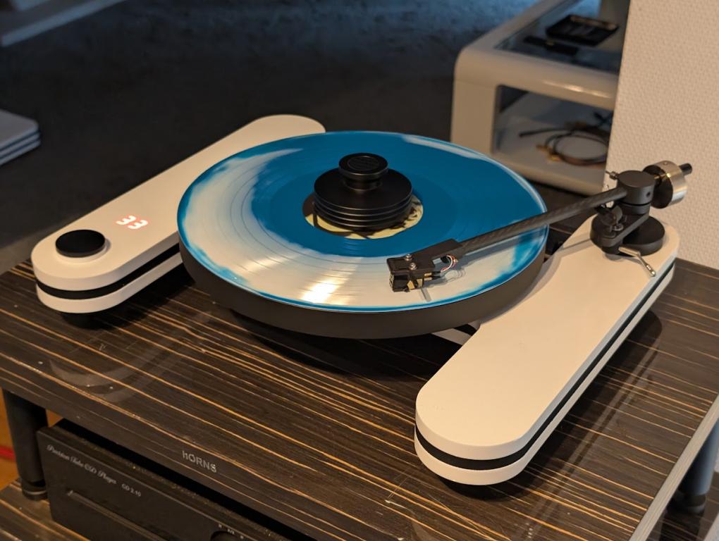 Das Modell H2 ist ein hochwertiger Plattenspieler mit Riemenantrieb und einem Tonarm mit kardanischer Aufhängung. Die außergewöhnliche Form des Plattenspielers wurde gewählt, um mögliche Störungen des Tellerlagers auf den Tonarm zu minimieren. Um klangstörende Einflüsse durch den Motor oder Trittschall zu vermeiden, wurde eine Sandwich-Konstruktion gewählt, bei der in der Mitte eine Lage eines vibrationsdämpfenden Schaumstoffs eingebracht wurde. Das Chassis ist aus Mineralwerkstoff hergestellt, der aufgrund seiner hohen Dichte und physikalischen Struktur nur geringe Resonanzen aufweist und daher ein ideales Material für diese Anwendung ist. Die hochglanzpolierte Oberfläche wird durch ein aufwändiges Verfahren hergestellt, bei dem 7 Schleif- und Poliergänge vorgenommen werden, und besticht durch eine angenehme Haptik.