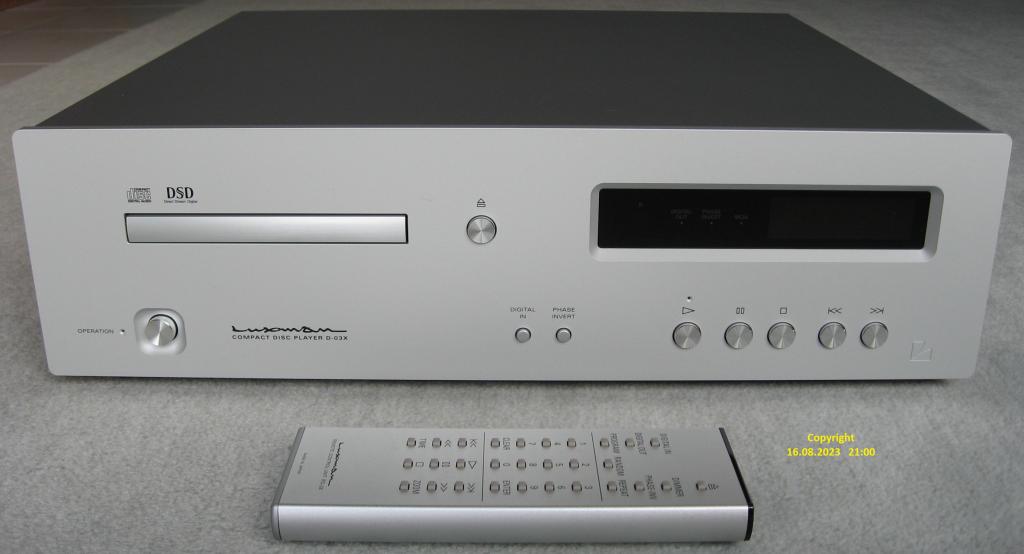 Ich verkaufe meinen Luxman D-03X CD-Player. Ich habe das Gerät im September 2021 beim deutschen Luxman-Referenz-Fachhändler als original verpackte Neuware gekauft, und es befindet sich im absoluten Topzustand, technisch und optisch. Der Player wurde nur mit Baumwollhandschuhen angefasst und über die Fernbedienung genutzt. Diese wurde in Folie geschützt. Das Gerät ist technisch und optisch im Traumzustand. Der Player wurde nur als Zweitgerät genutzt, und hat wenige Betriebsstunden.