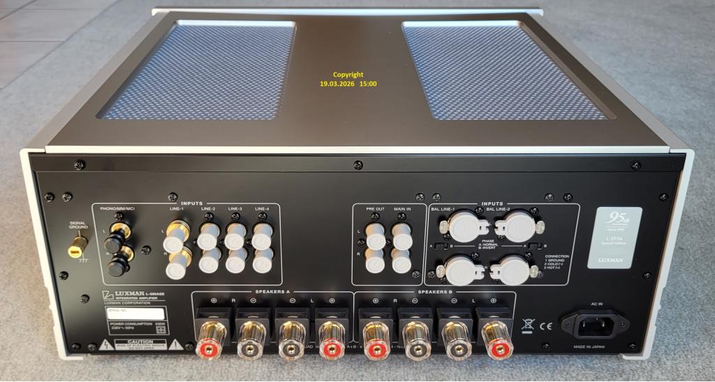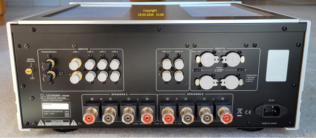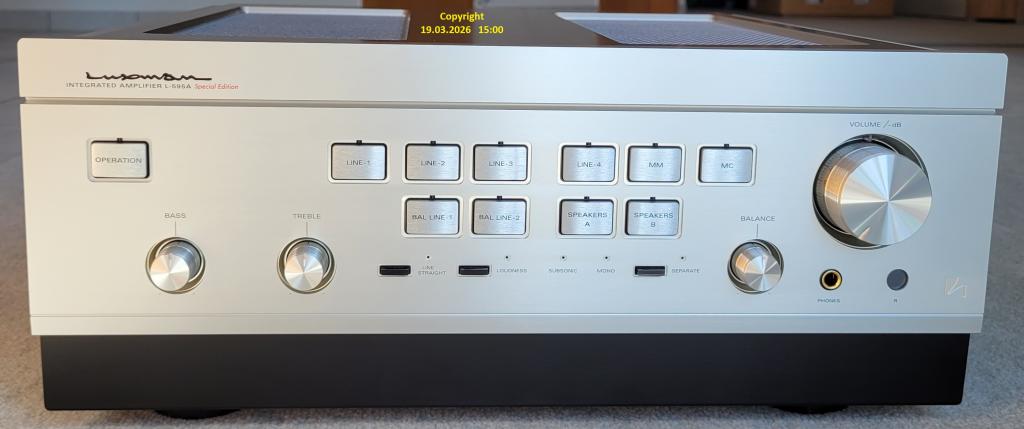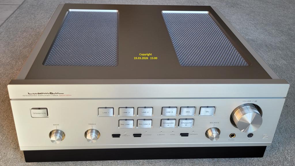 Das Gerät wurde von mir im April 2025 beim deutschen Luxman-Referenz-Händler als original verpacktes Neugerät gekauft. Es befindet sich im absoluten Traumzustand, technisch und optisch. Es wurde nur mit Baumwollhandschuhen angefasst, und auf Zimmerlautstärke betrieben. Die Bedienung erfolgte ausschließlich über die Fernbedienung, die sich in einer Schutzhülle befindet. Somit gibt es keinerlei Bedienspuren, weder am Gerät noch an der Fernbedienung.