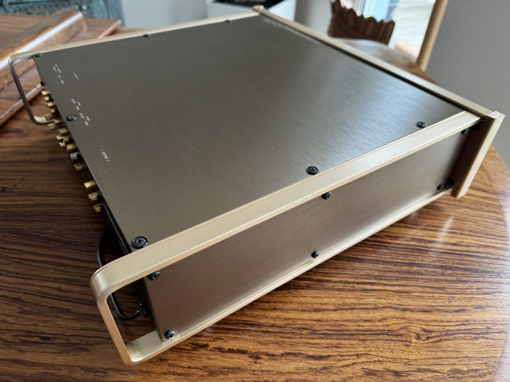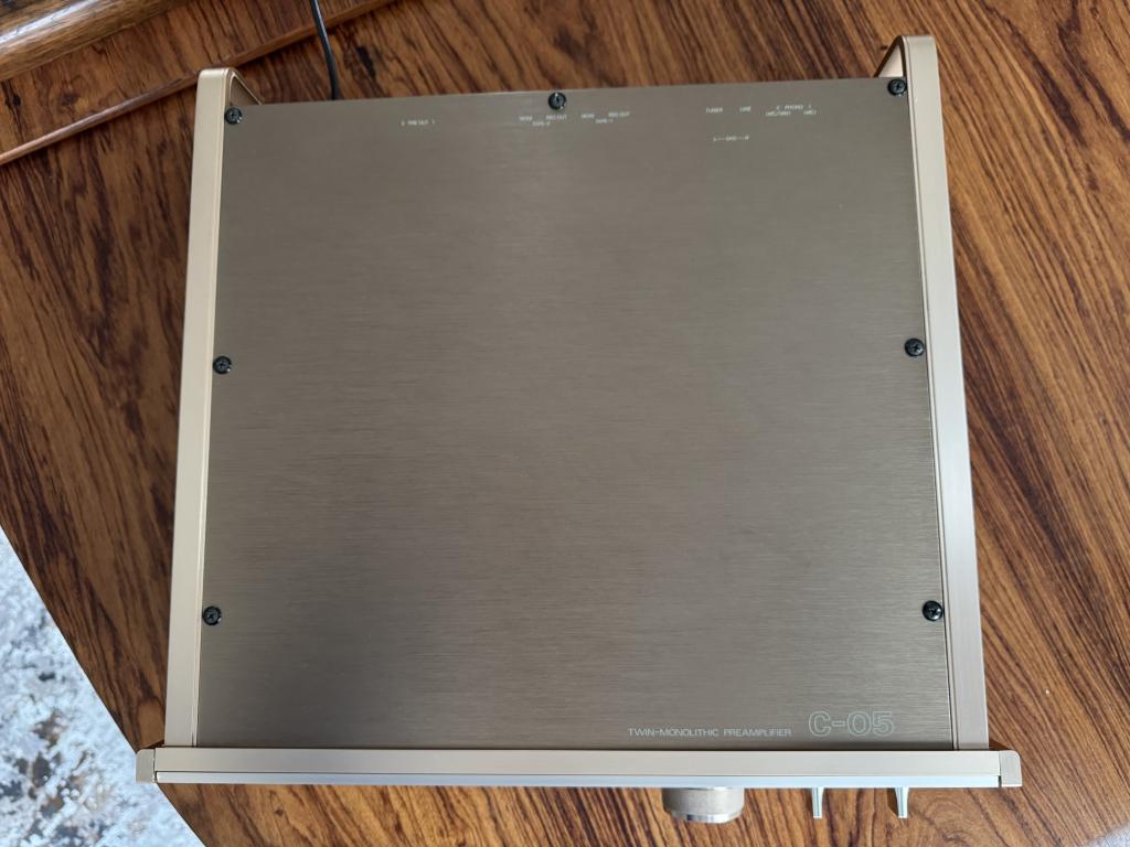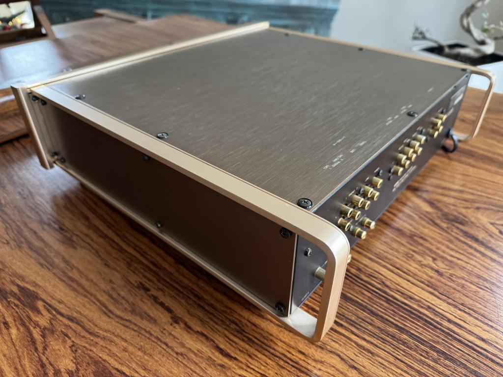 Luxman C-05 abzugeben. Dieser vollständig restaurierte Vorverstärker ist in kosmetisch sehr gutem Zustand mit vereinzelten Gebrauchsspuren, die sich aber, wie die Bilder zeigen, in Grenzen halten.