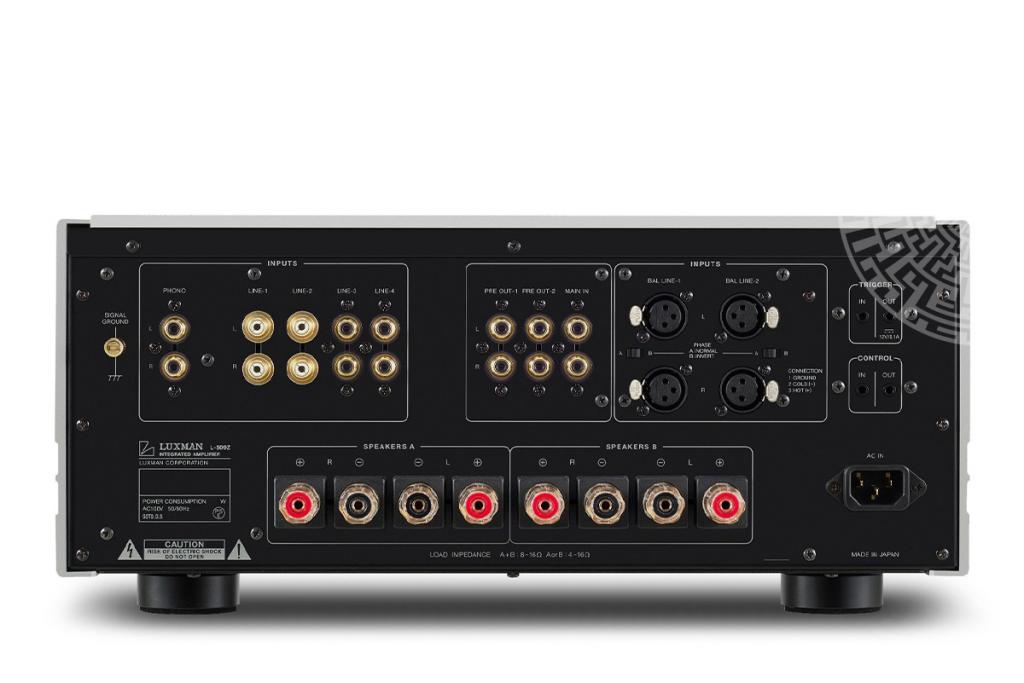 The Luxman L‑505Z is a 100 W + 100 W (8 Ohm) / 150 W + 150 W (4 Ohm) Class‑AB integrated amplifier. It uses Luxman’s “LIFES 1.0” feedback engine for a natural, low-distortion sound.